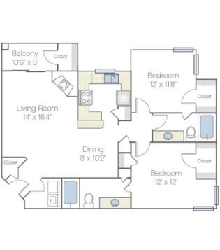Apartment Model: A2From $1,0991 Bedroom, 1 Bath, 655 sq ftAvailable Now![]()