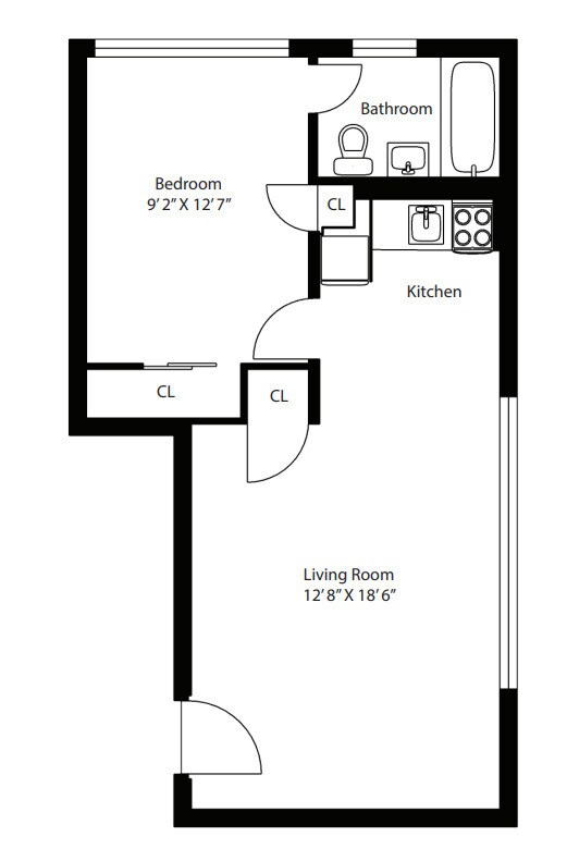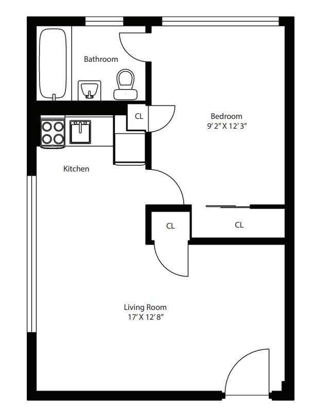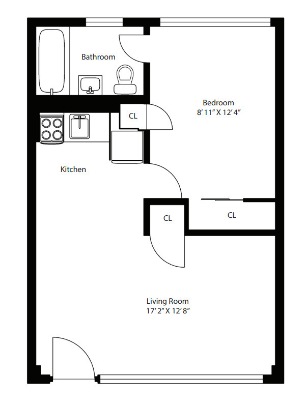 One Bedroom - Floorplan 2 Apartment Unit: 203Apartment Model: One Bedroom$1,1001 Bedroom, 1 Bath, 425 sq ftAvailable NowFloorplansPhotos![]()
