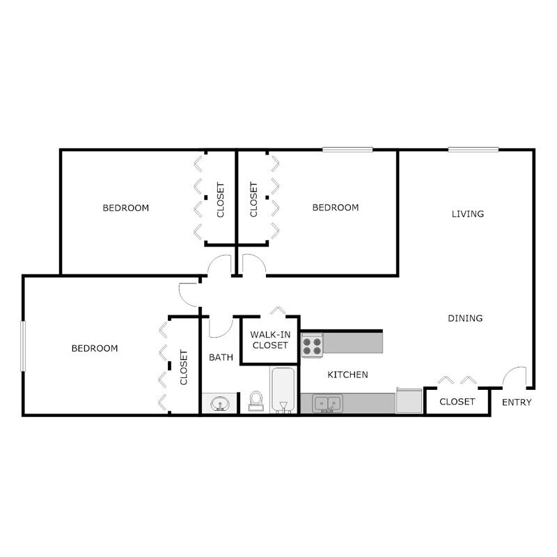 Apartment Model: 3 Bedrooms 1 Bathroom$1,5403 Bedroom, 1 Bath, 1000 sq ftUnavailableFloorplansPhotos![]()
