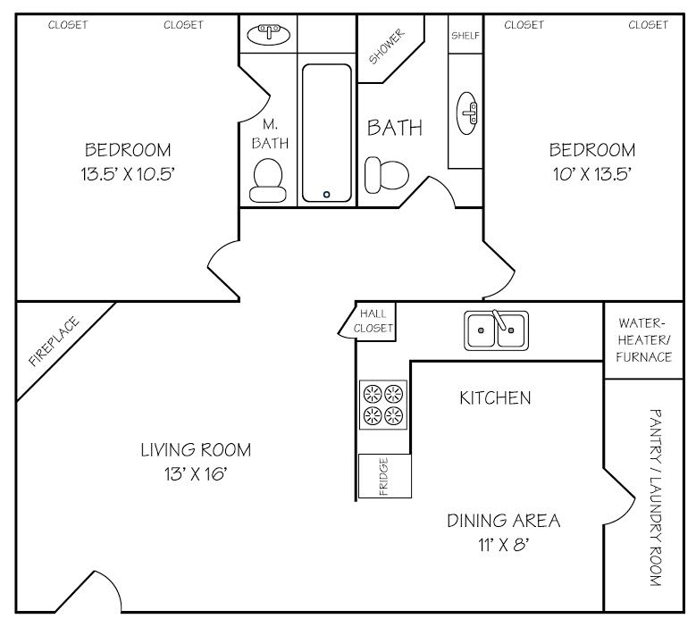 2 Beds, 1 Bath, 1100 sq ftLargest 2 BedroomThis is the largest 2 Bedroom at this PropertyModel Gallery