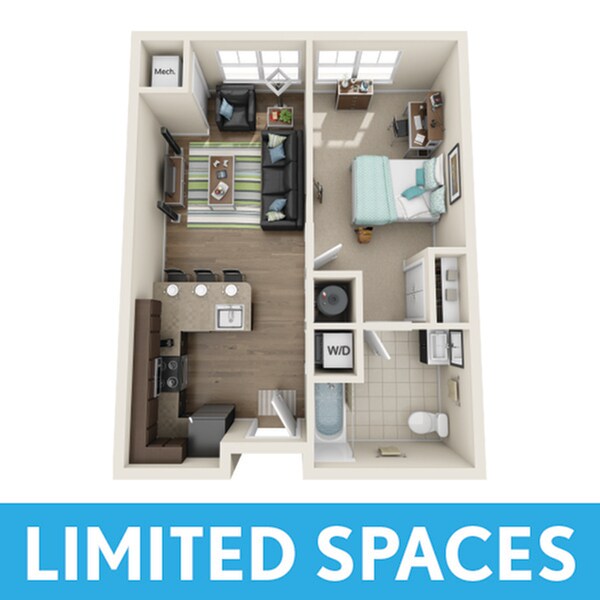 Studio, 1 Bath, 378-381 sq ftAvailability Details