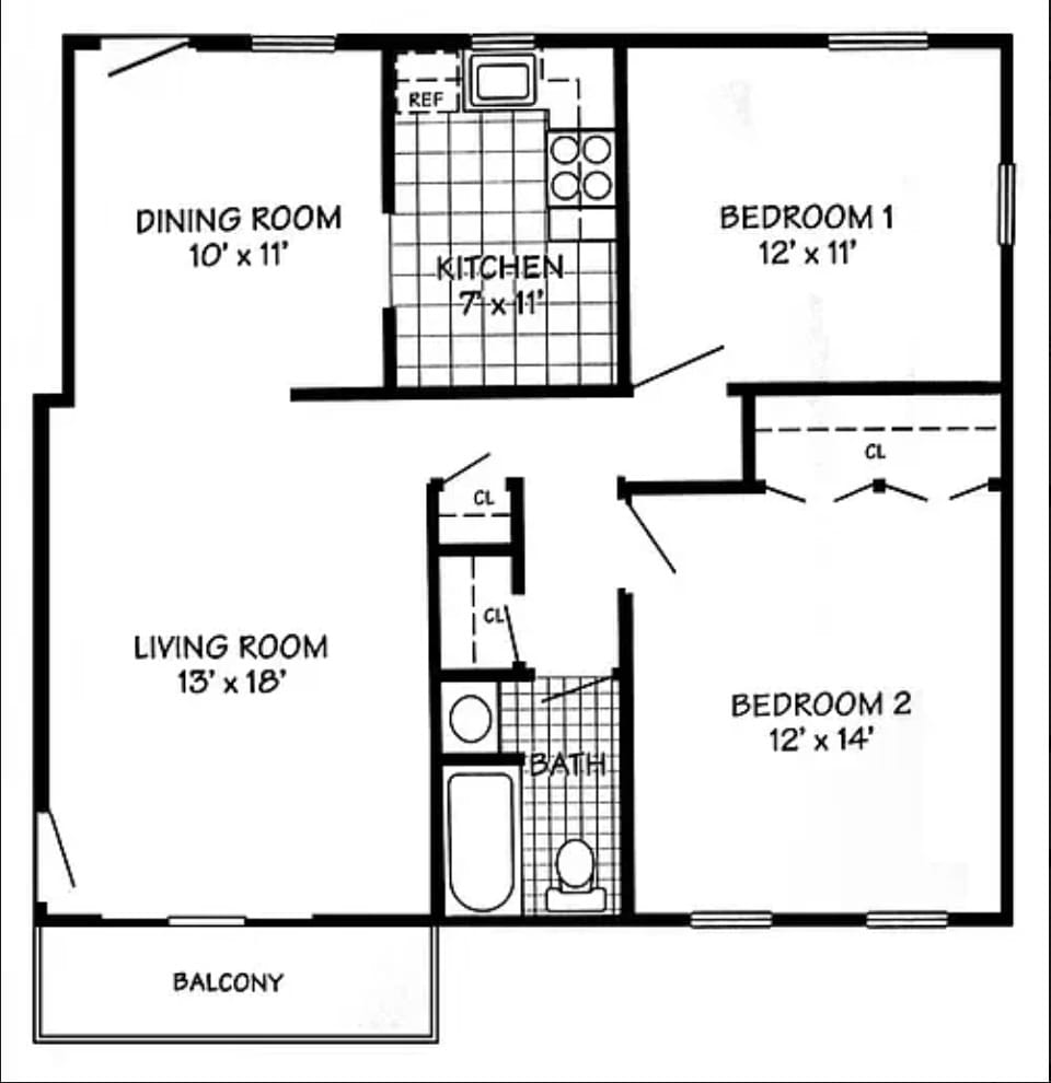 1BR/1BA - Floorplan 1 2 Bedrooms