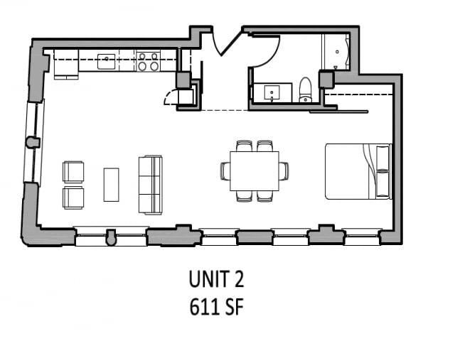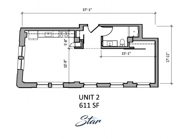 Star - Floorplan 2 Apartment Unit: 402Apartment Model: StarStudio, 1 Bath, 611 sq ftAvailable January 24, 2026Consolidated