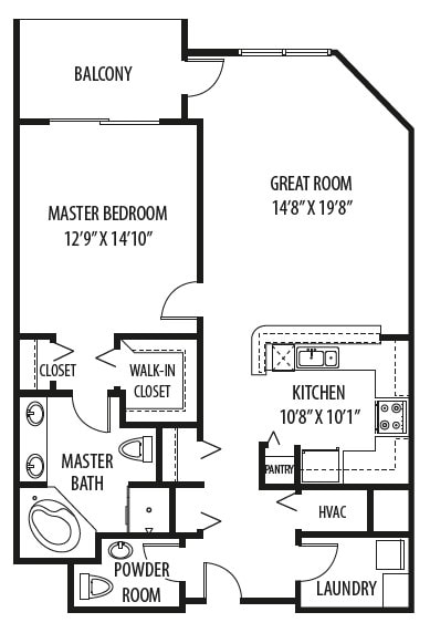 1 Bed, 1.5 Baths, 1449 sq ftLargest 1 BedroomThis is the largest 1 Bedroom at this PropertyModel Gallery