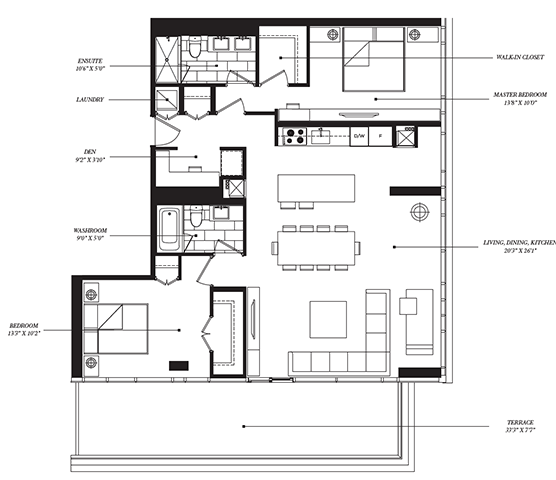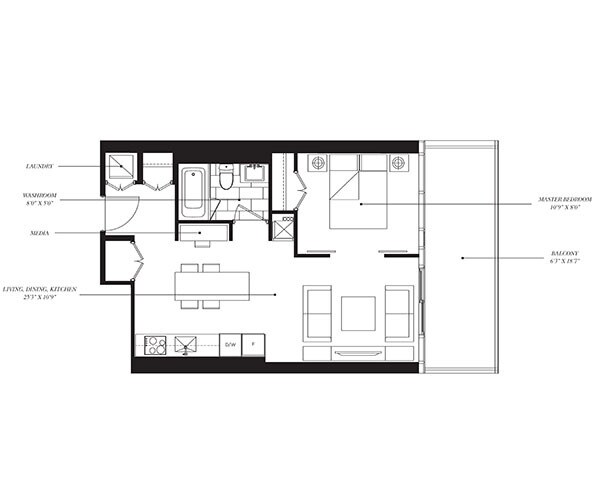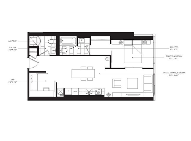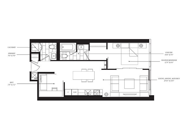 One Bedroom + Den - Floorplan 3 Apartment Unit: 0309Apartment Model: One Bedroom + Den$3,2451 Bedroom, 1.5 Bath, 644 sq ftAvailable January 31, 2026![]()