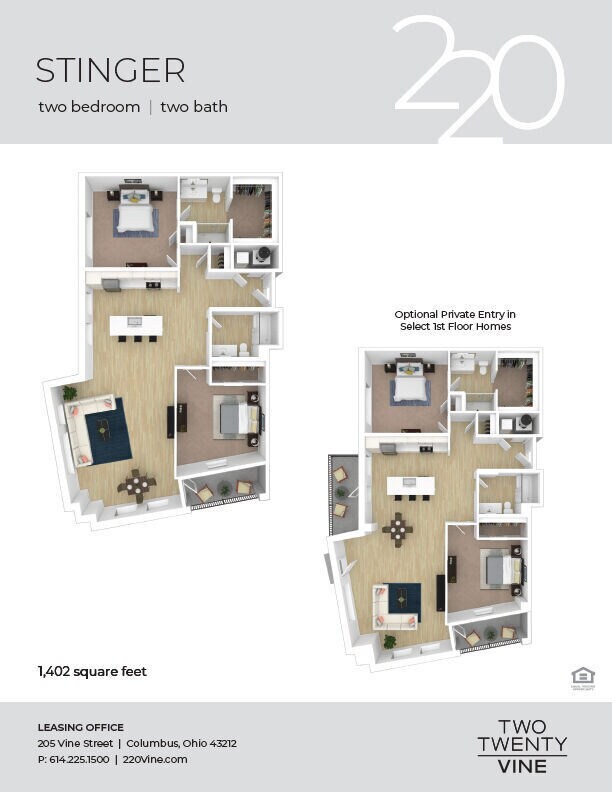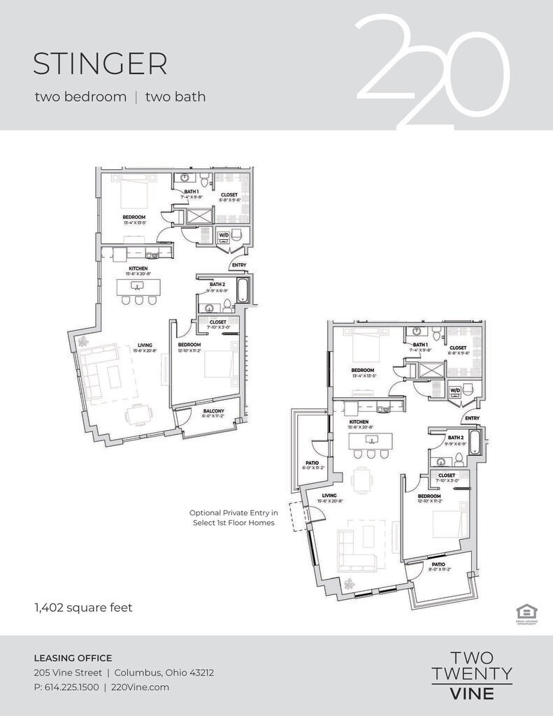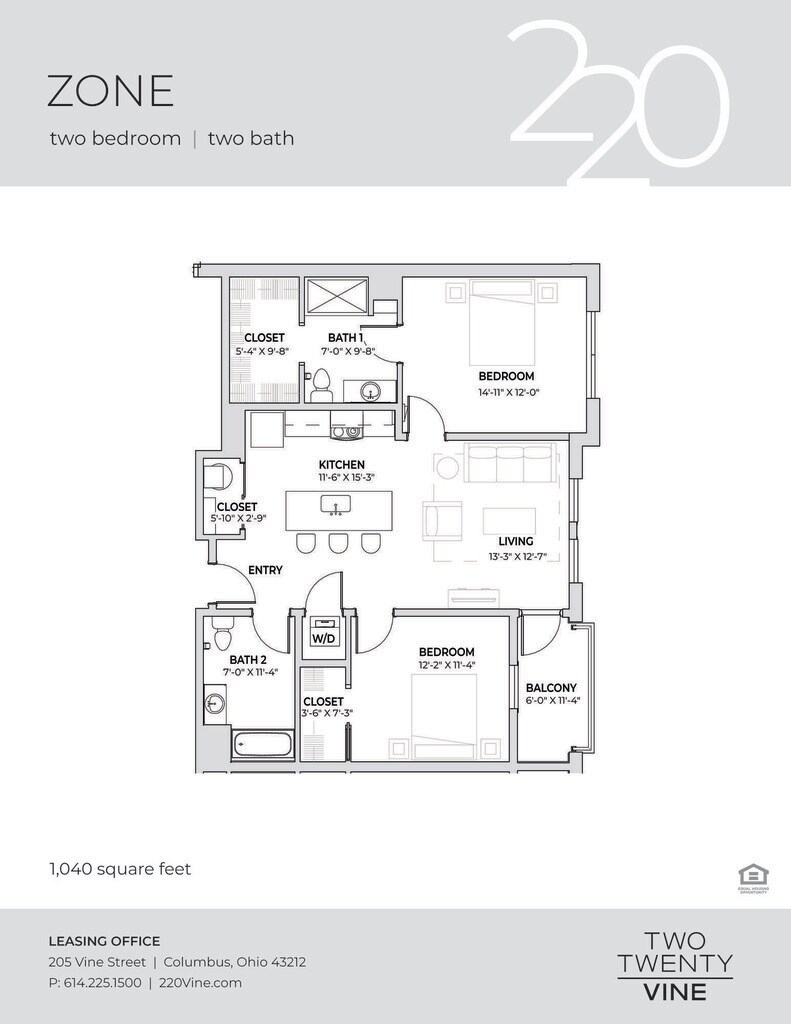 Welcome to Two Twenty Vine, located in the award-winning Arena District! Offering spacious one, two, and three-bedroom apartment homes, this is where excitement meets comfort. Imagine being just steps away from the action at Nationwide Arena, Huntington Ballpark, and Field. Whether you’re catching a game, enjoying a concert, or dining at a nearby restaurant, the Arena District provides year-round fun and convenience for you and your guests.Live like a VIP with nearby resident amenities and offerings. Enjoy an on-site pool and modern apartment features such as open-concept floor plans, Quartz countertops, modern lighting, wood-like flooring, and options for courtyard, street views, and walk-ups. Two Twenty Vine is your gateway to luxurious living in the heart of the city!