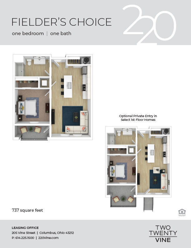 Fielder`s Choice - Floorplan 2 Apartment Unit: 221Apartment Model: Fielder`s Choice$1,5491 Bedroom, 1 Bath, 737 sq ftAvailable NowFloorplan Ace