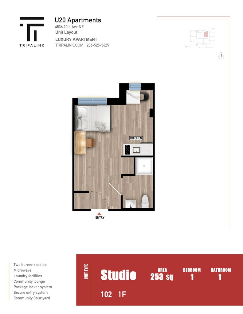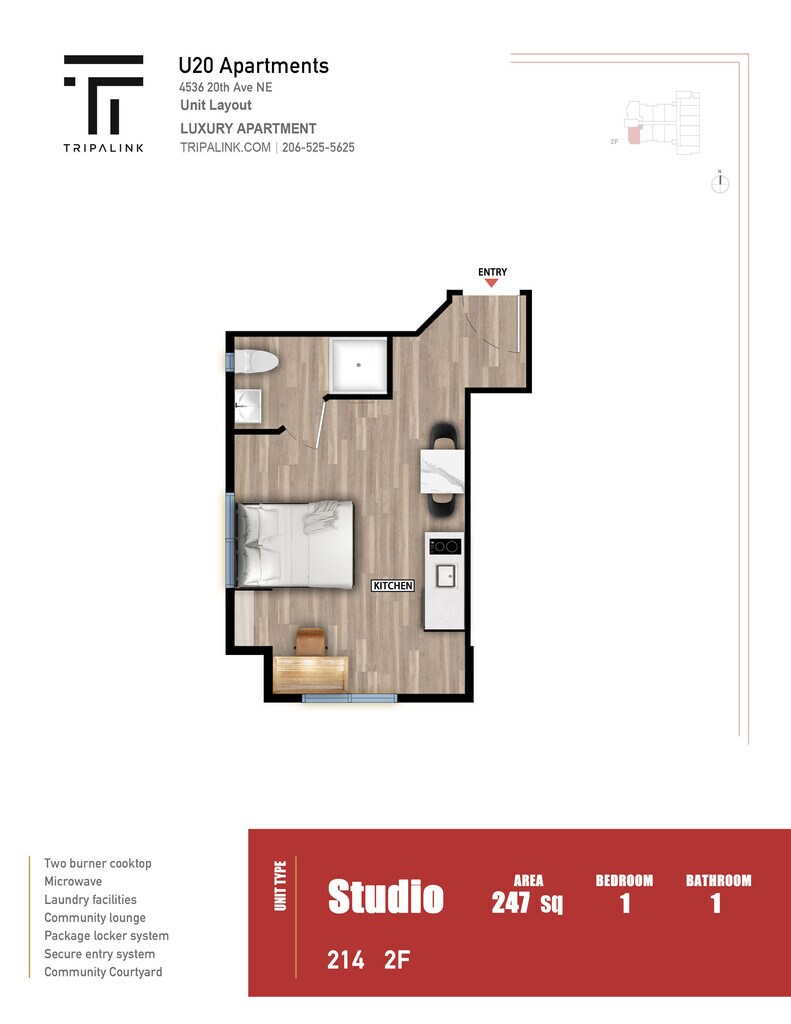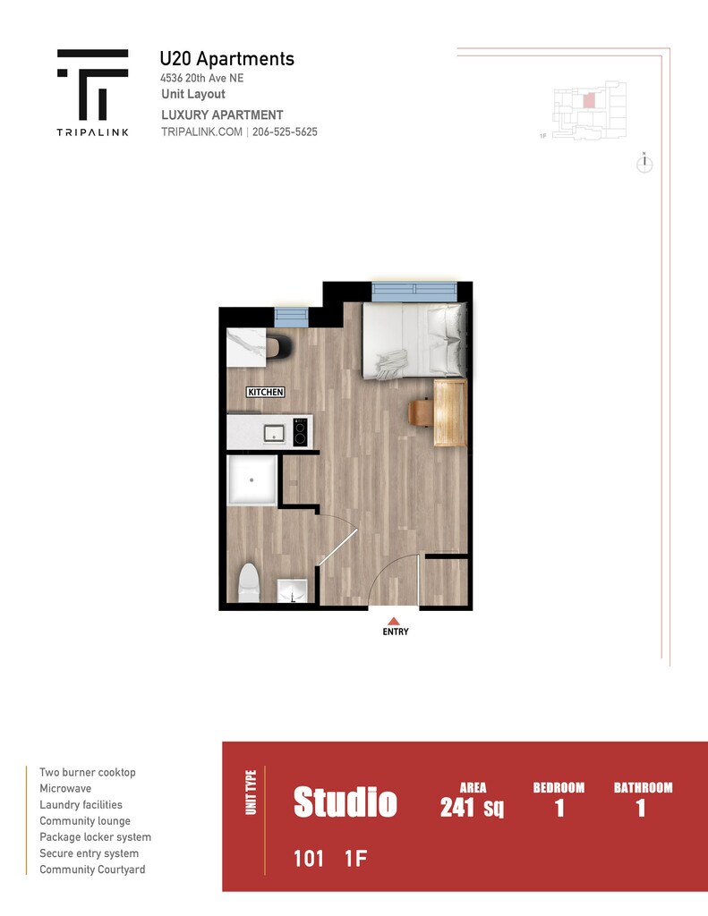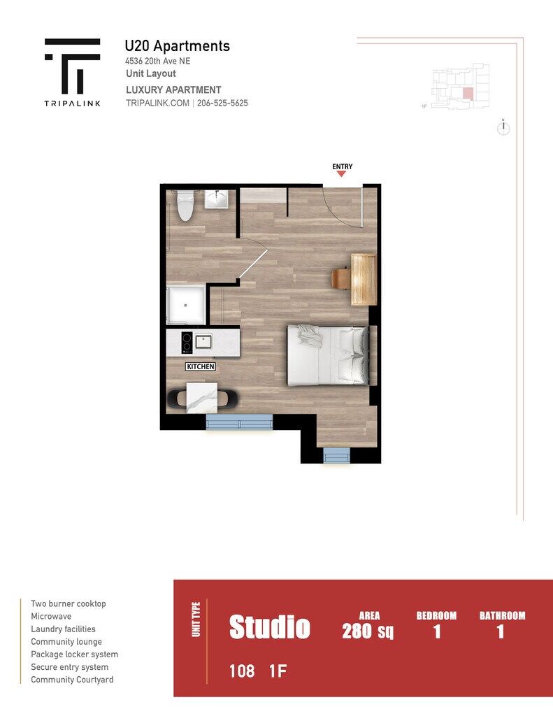 U20 Apartments is located in the University District Neighborhood and 98105 Zip code of Seattle, WA. This community is professionally managed by Tripalink