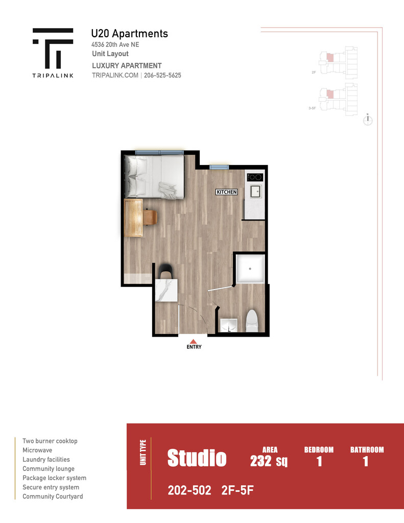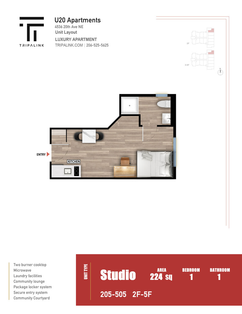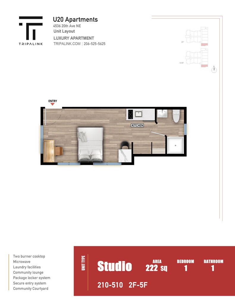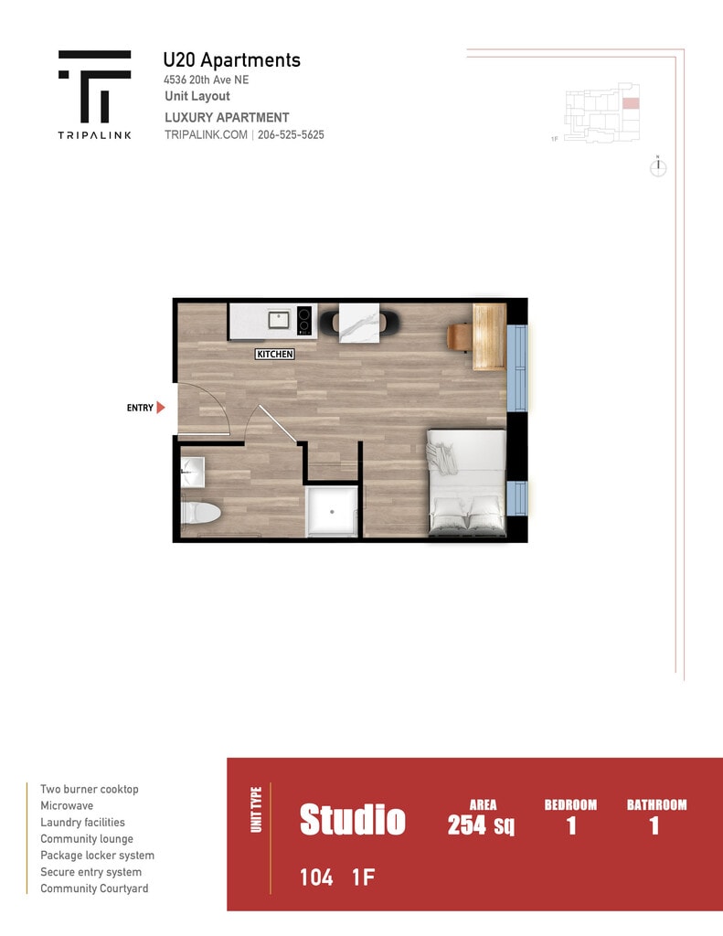 U20 Apartments is located in the University District Neighborhood and 98105 Zip code of Seattle, WA. This community is professionally managed by Tripalink