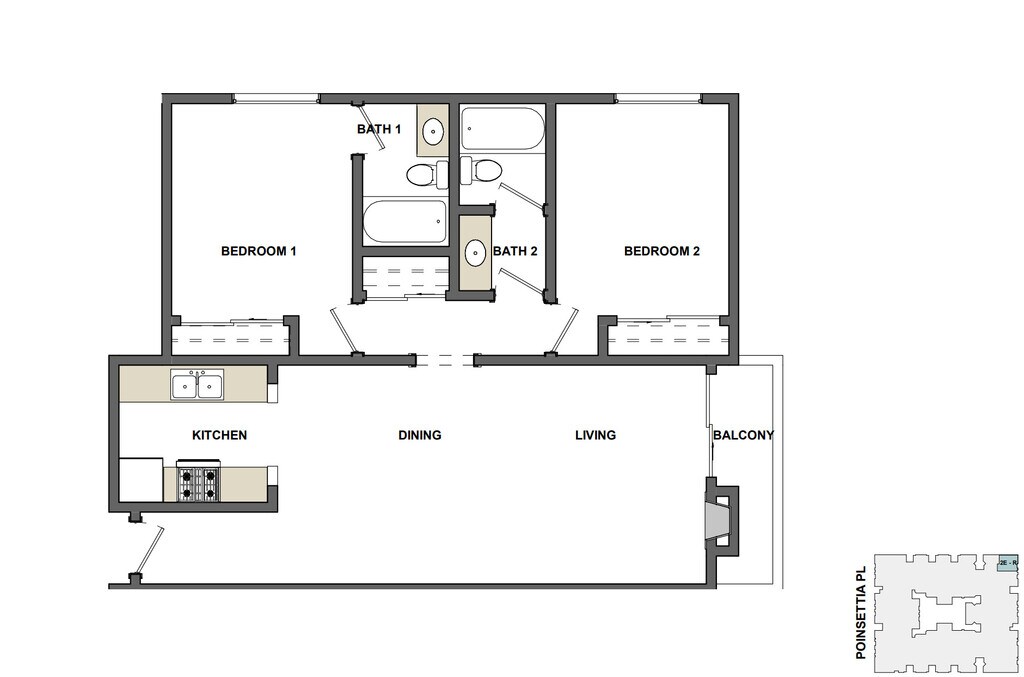 1 Bed - Floorplan 2 Bedrooms
