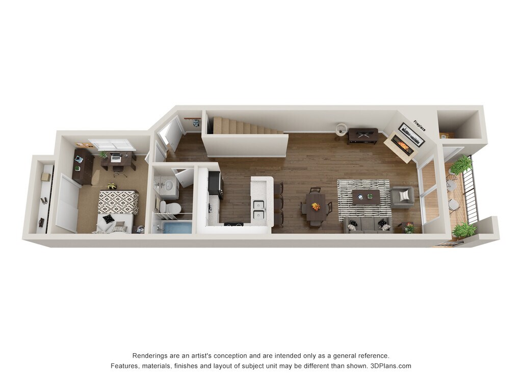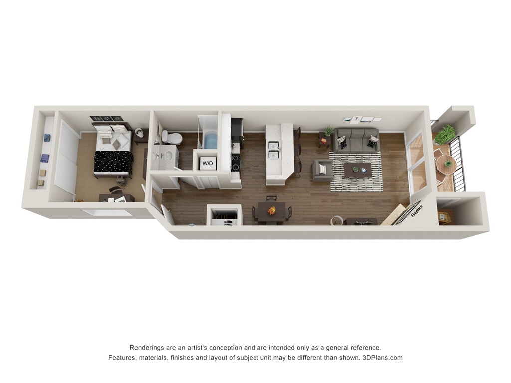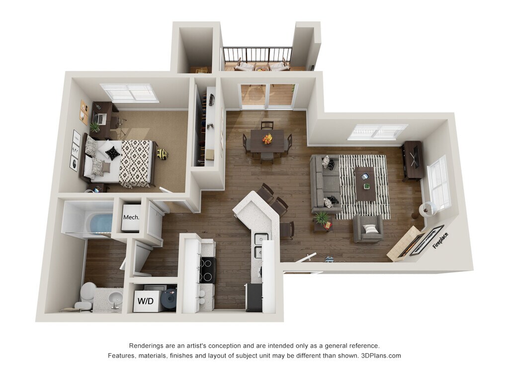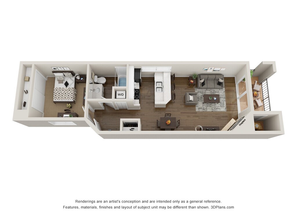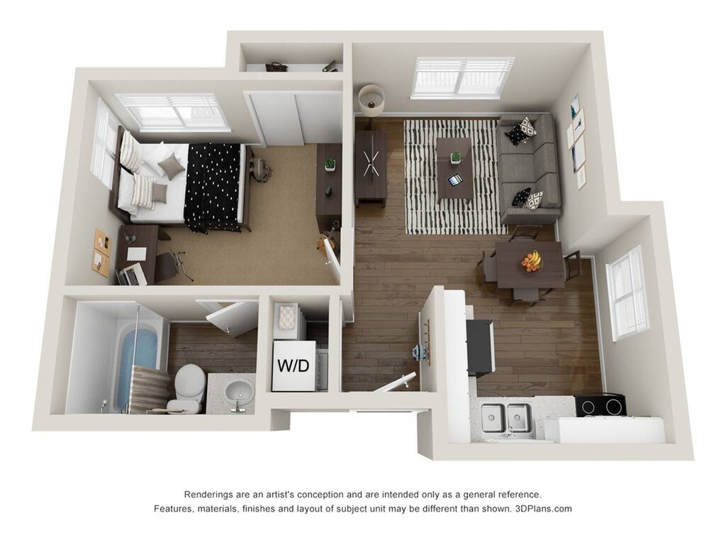 1x1D Renovated - Image 1 Floor plans are artist's rendering. All dimensions are approximate. Actual product and specifications may vary in dimension or detail. Not all features are available in every rental home. Prices and availability are subject to change. Base rent is based on monthly frequency. Additional fees may apply, such as but not limited to package delivery, trash, water, amenities, etc. Deposits vary. Please see a representative for details.