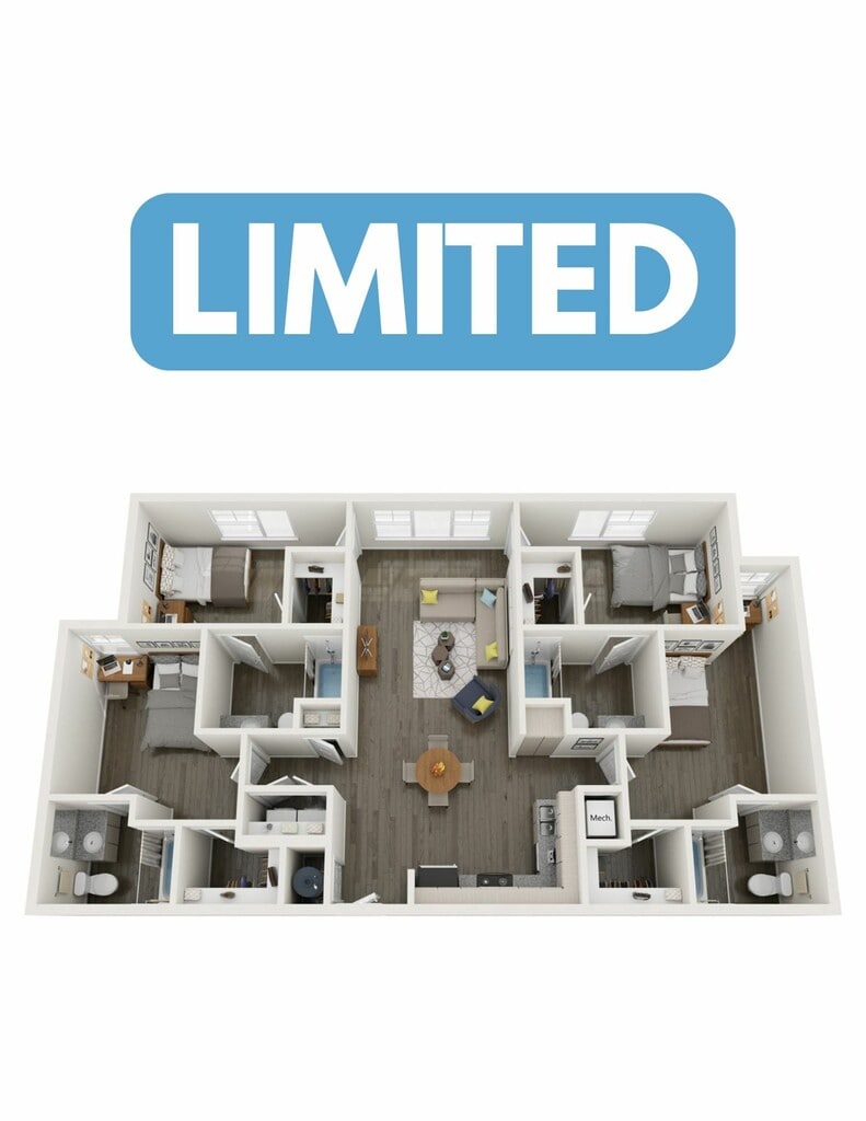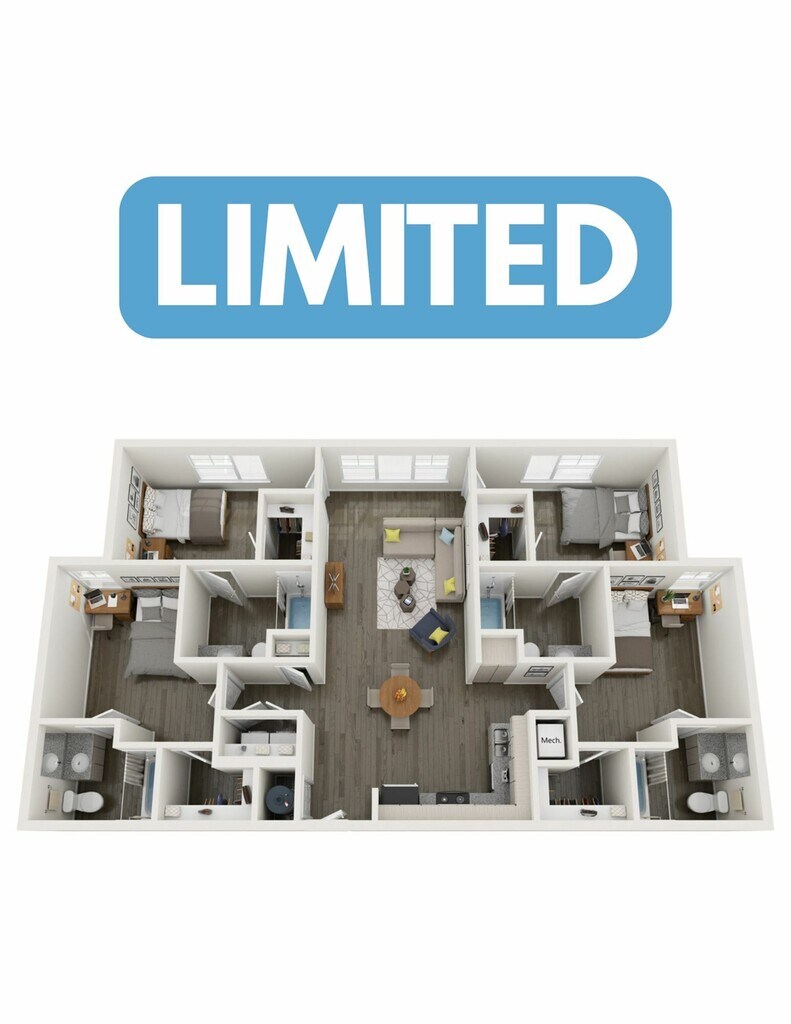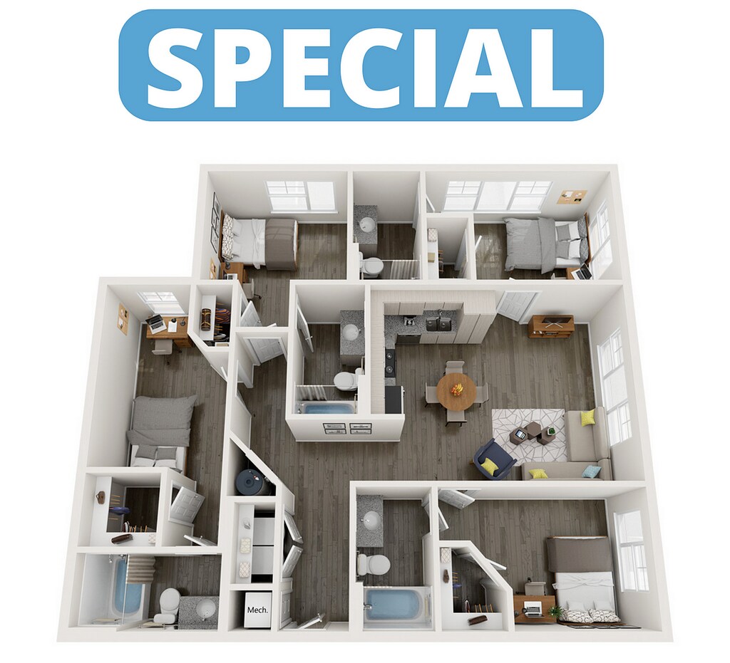B4 - Floorplan 2 Apartment Unit: PrivateApartment Model: B4$1,5052 Bedroom, 2 Bath, 882 sq ftAvailable NowApartment Unit: PrivateApartment Model: B4$1,5602 Bedroom, 2 Bath, 882 sq ftAvailable August 15, 2026Floorplan B2