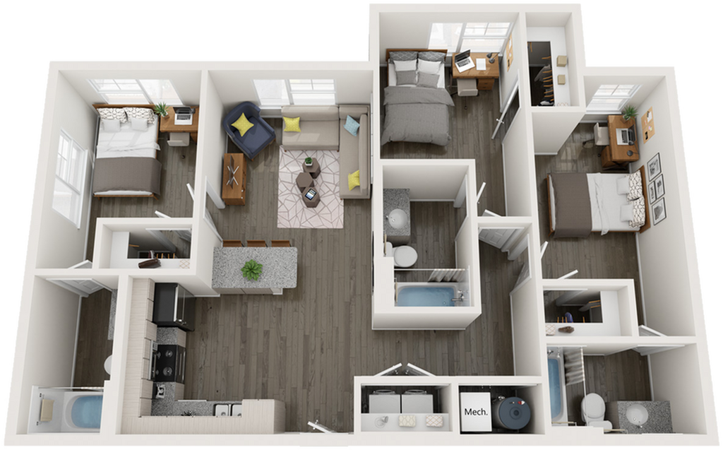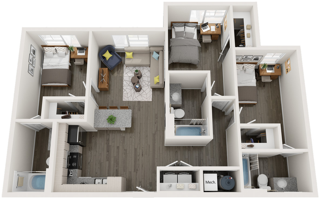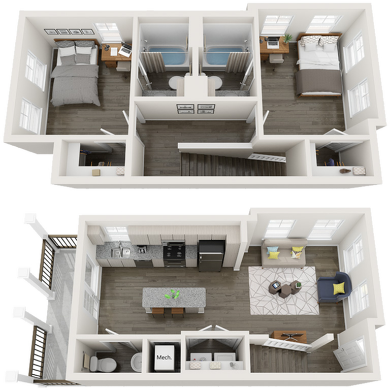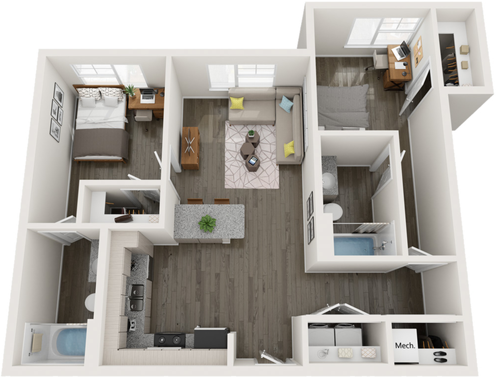 2 Beds, 2 Baths, 809 sq ftAvailable NowModel Gallery