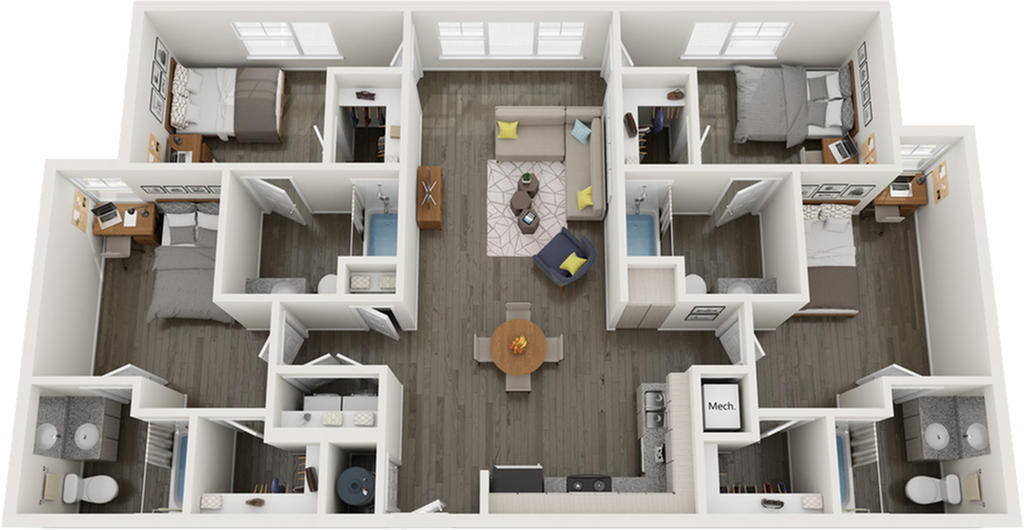 Apartment Model: B4From $1,5052 Bedroom, 2 Bath, 882 sq ftAvailable NowFloor plans are artist's rendering. All dimensions are approximate. Actual product and specifications may vary in dimension or detail. Not all features are available in every rental home. Prices and availability are subject to change. Base rent is based on monthly frequency. Additional fees may apply, such as but not limited to package delivery, trash, water, amenities, etc. Deposits vary. Please see a representative for details.