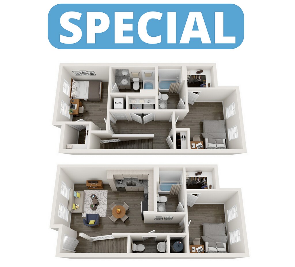 2 Beds, 2 Baths, 818 sq ftAvailable NowModel Gallery