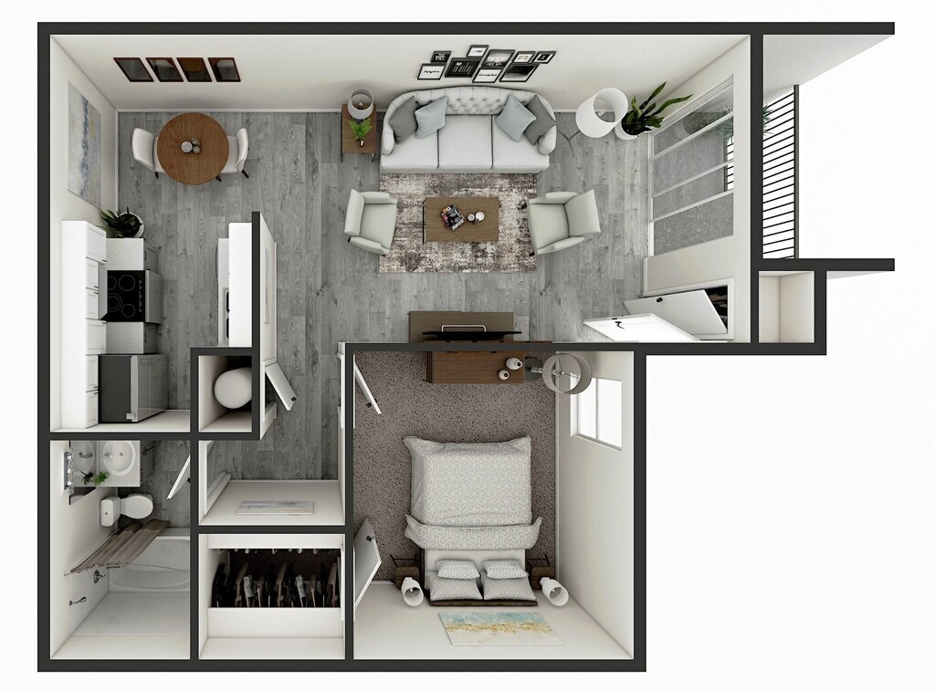 Studio, 1 Bath, 550 sq ftAvailable NowModel Gallery