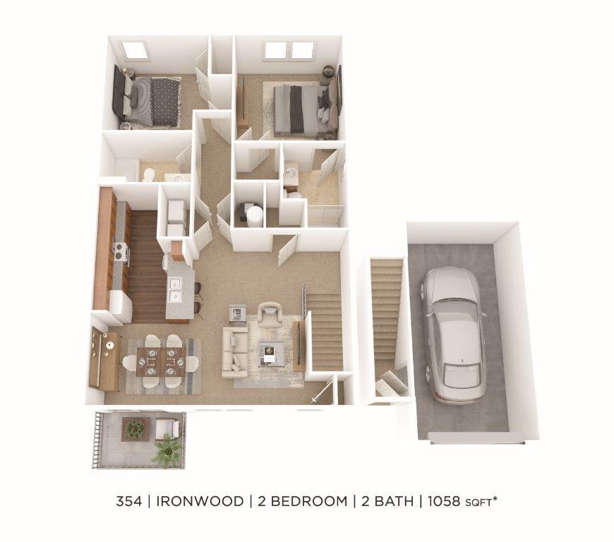 2 Beds, 2 Baths, 1058 sq ftAvailable NowModel Gallery