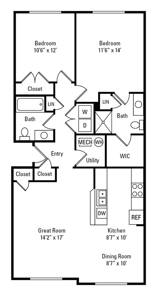 Two Bedroom 2 Bath- 1,022 sqft - Floorplan 1 ![]()
