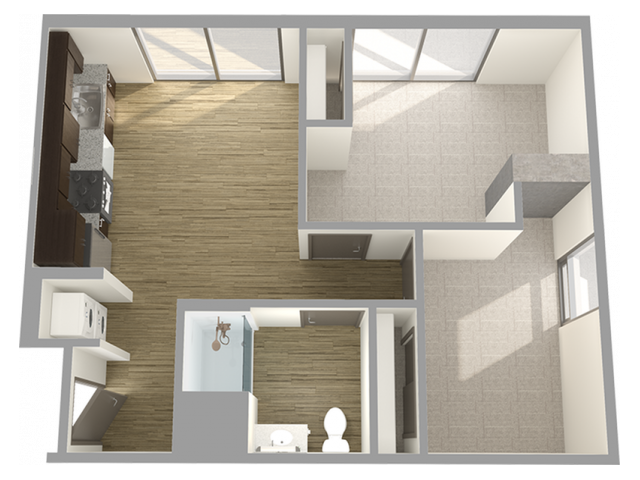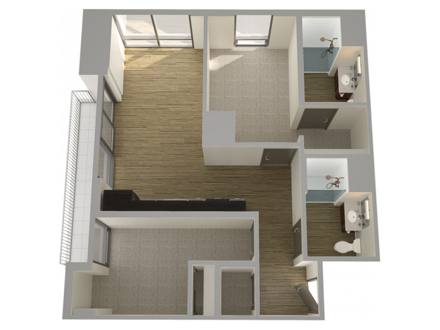 1x1 - Floorplan 1 Apartment Unit: PrivateApartment Model: 1x1$1,6251 Bedroom, 1 Bath, 588 sq ftAvailable August 17, 20262 Bedrooms