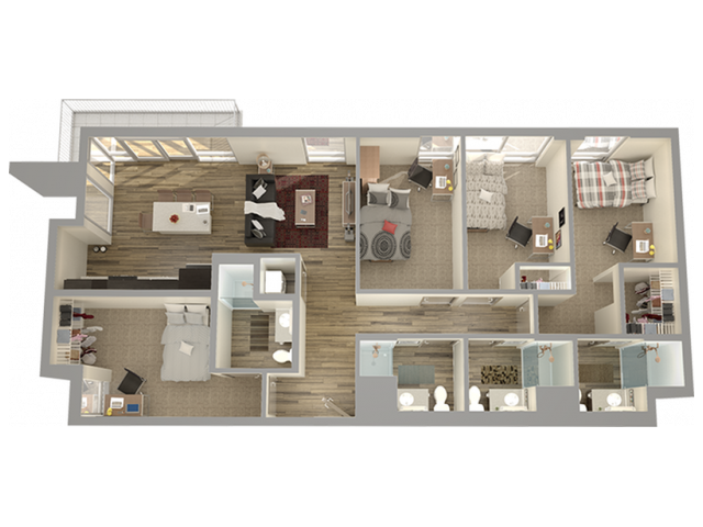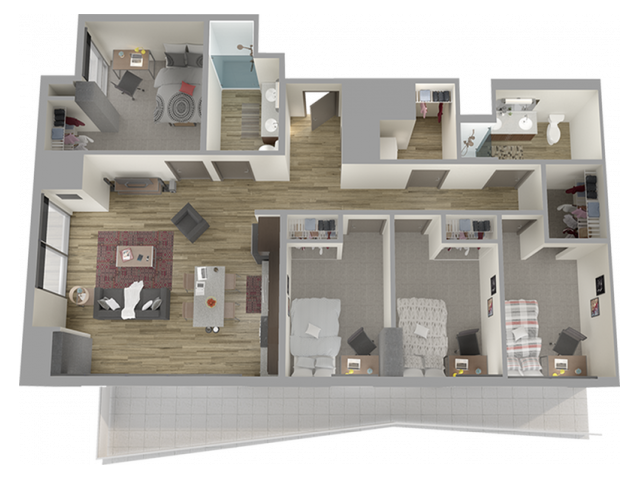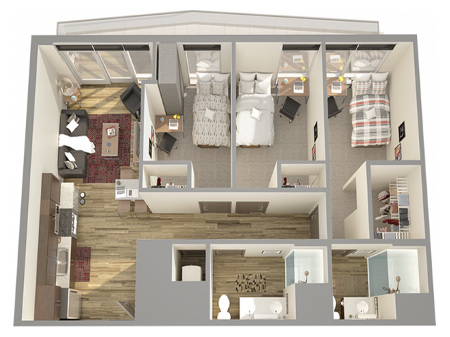 2x2 - Floorplan 1 Apartment Unit: PrivateApartment Model: 2x2$1,3352 Bedroom, 2 Bath, 842 sq ftAvailable August 17, 20263 Bedrooms