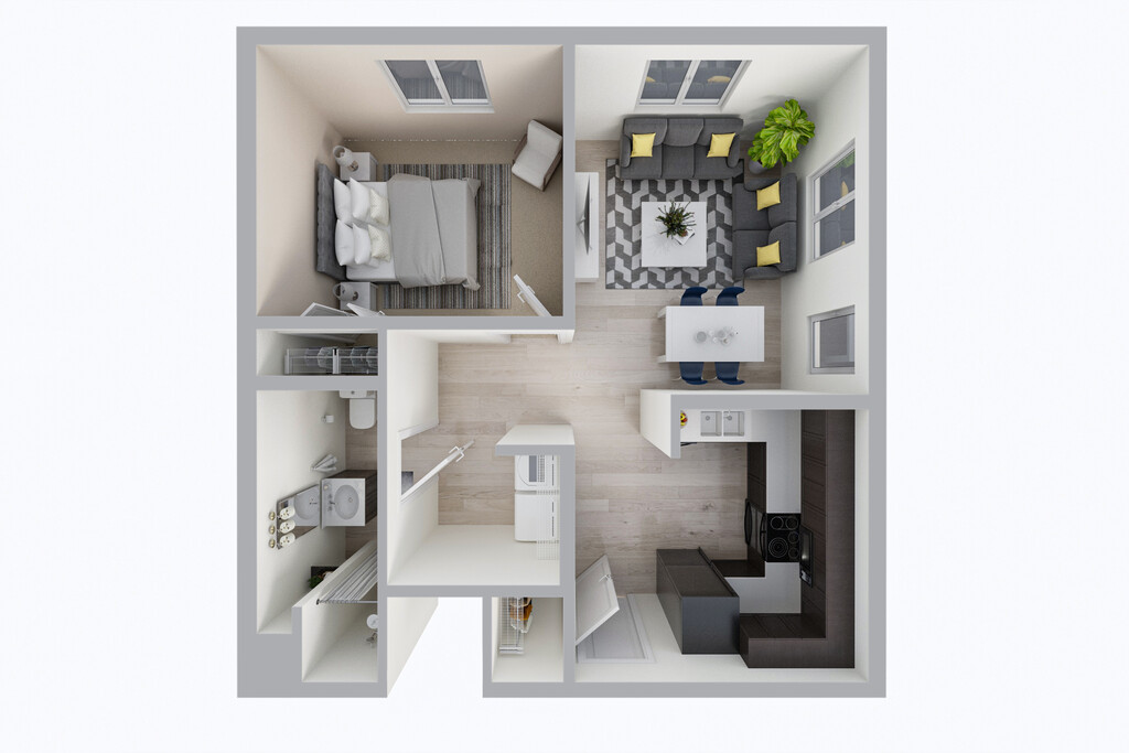 1 Bed, 1 Bath, 678 sq ftModel Gallery
