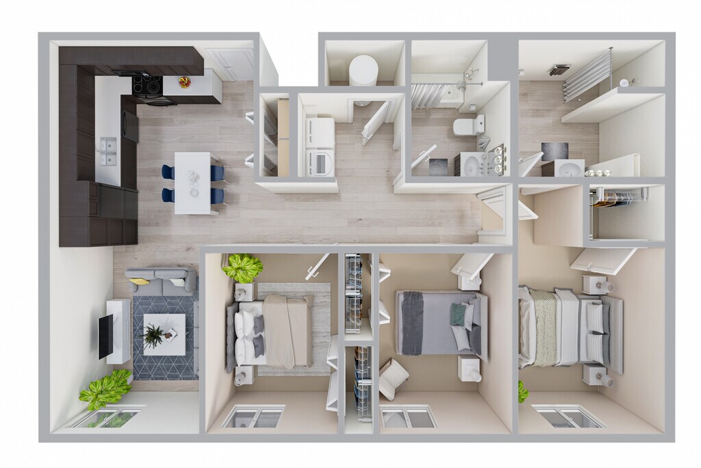 Apartment Model: 3 Bed 2 Bath$1,2503 Bedroom, 2 Bath, 1106 sq ftAvailable Now![]()