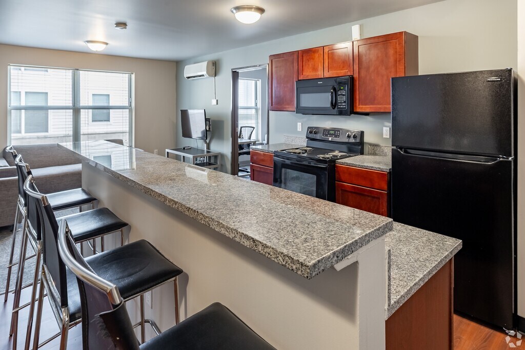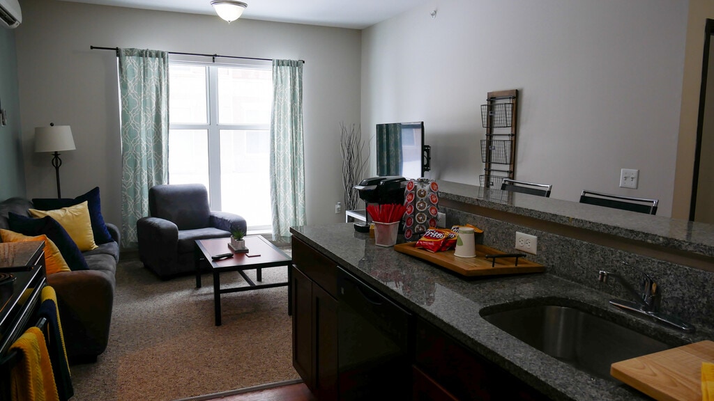 Union at Dearborn offers a variety of fully furnished student housing options, with 1- to 4-bedroom apartments ranging from 436 to 1,412 sq. ft. Our incredible amenities package includes a 24-hour fitness center, video game arcade, basketball court, and an array of game tables such as pool, bubble hockey, air hockey, foosball, and ping pong. You'll also enjoy modern touches like granite countertops-and the best part? ALL utilities are included in your monthly rent! Located near the University of Michigan-Dearborn, Henry Ford College, and other nearby schools, our community provides convenient access to campuses while offering a luxurious student living experience.