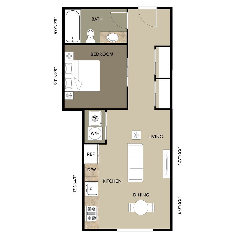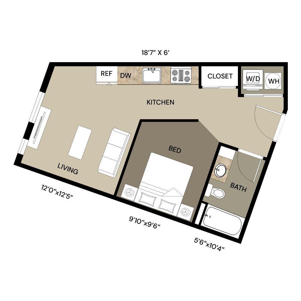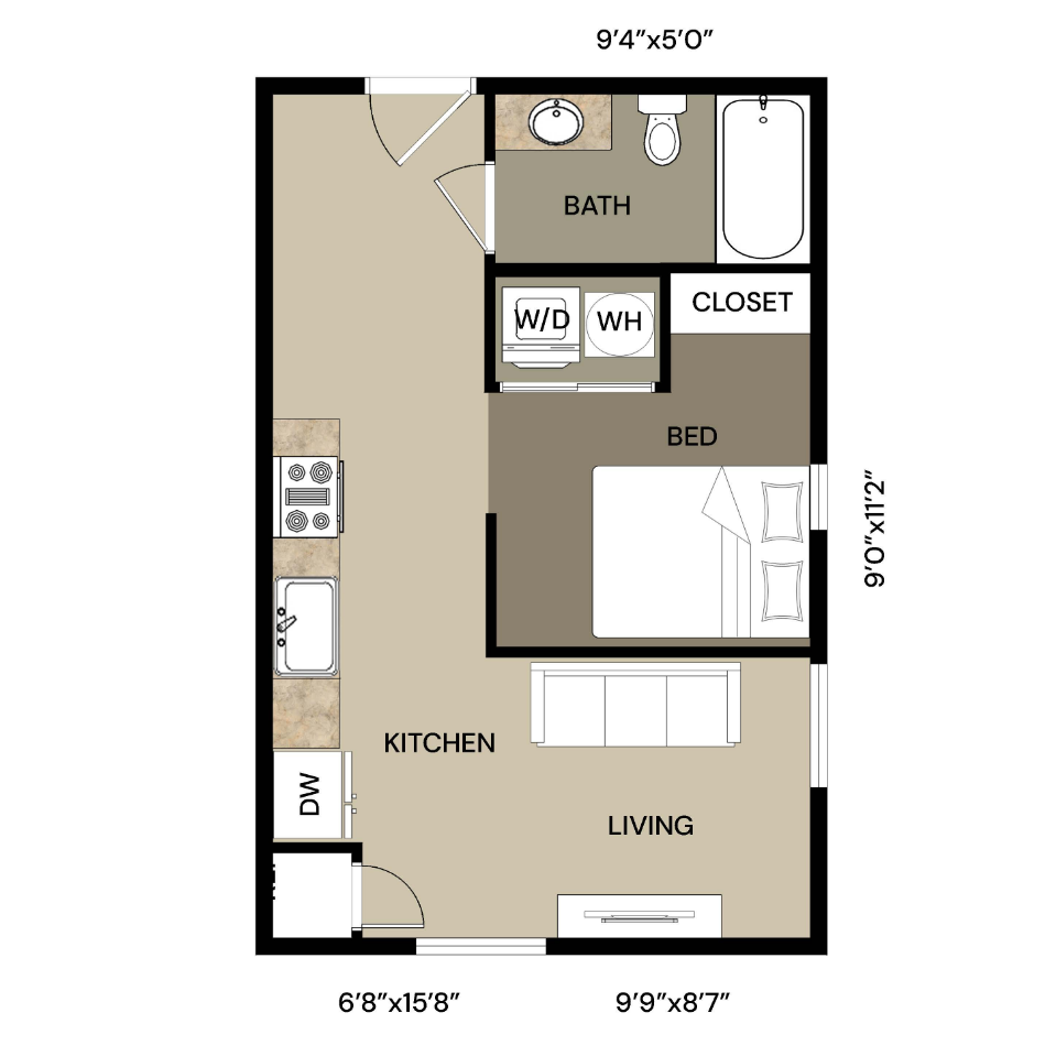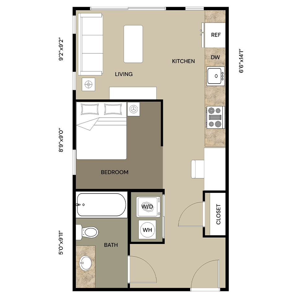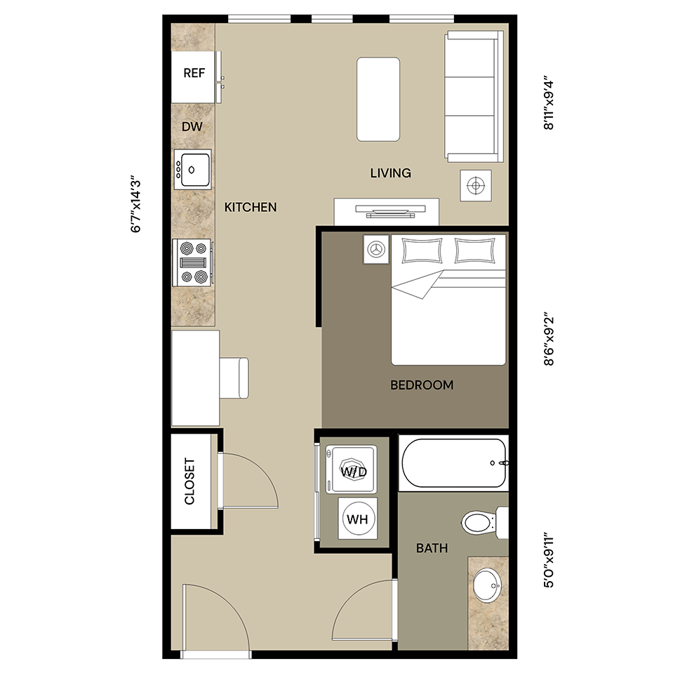 Studio, 1 Bath, 496 sq ftModel Gallery