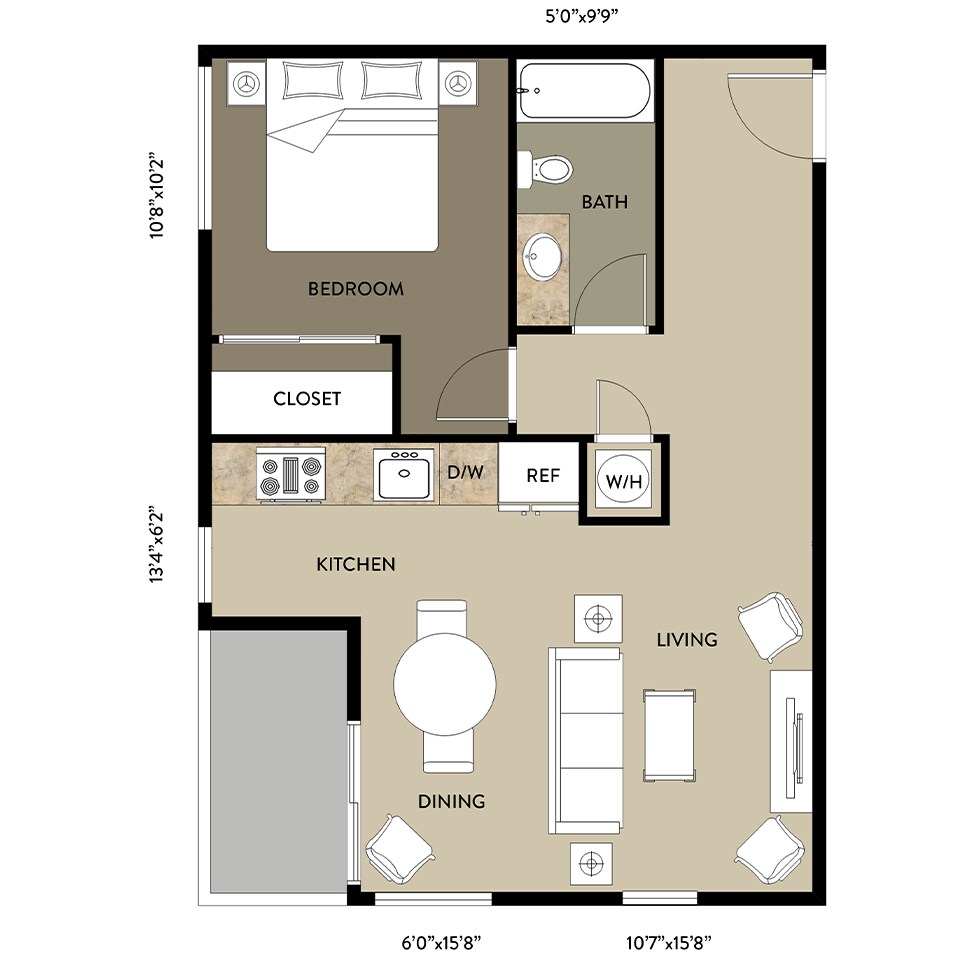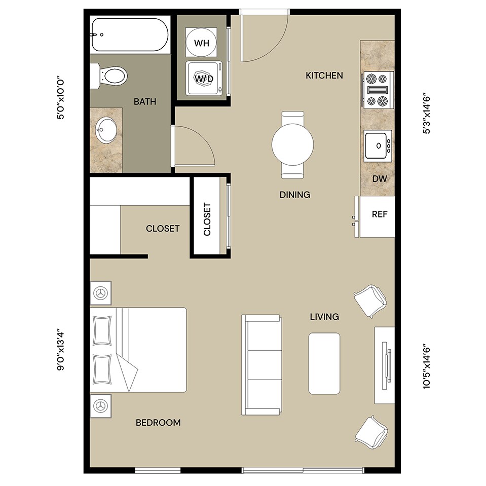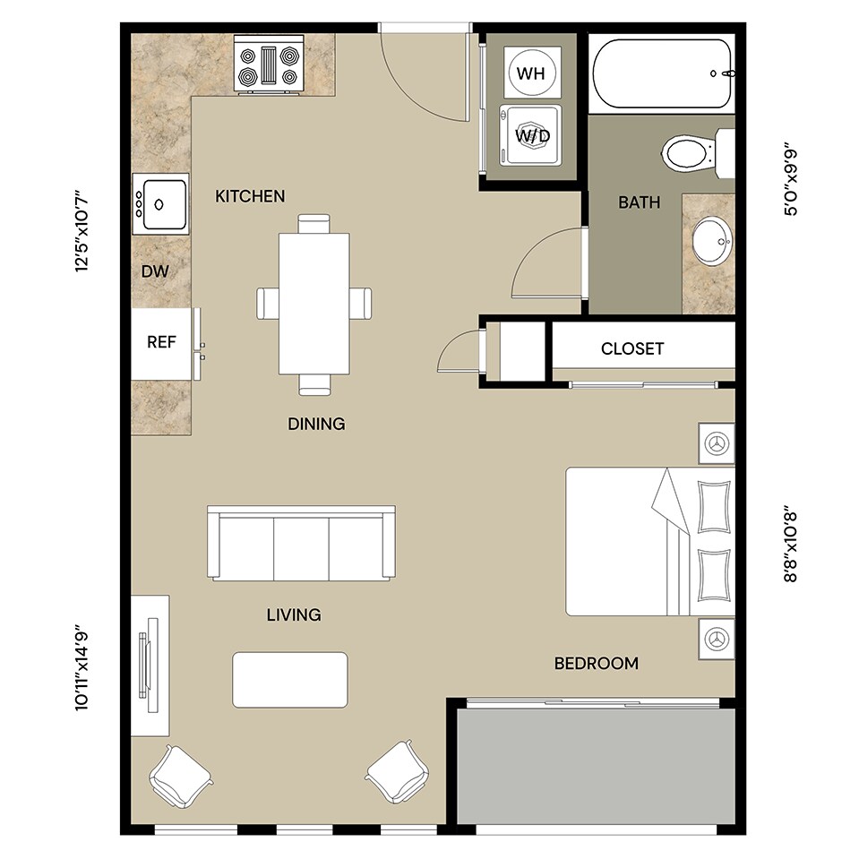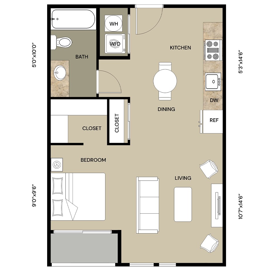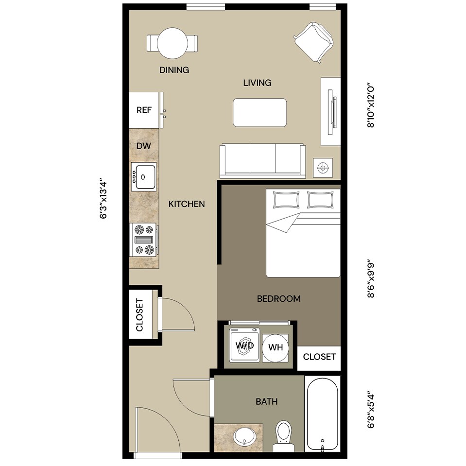 Studio, 1 Bath, 496 sq ftModel Gallery