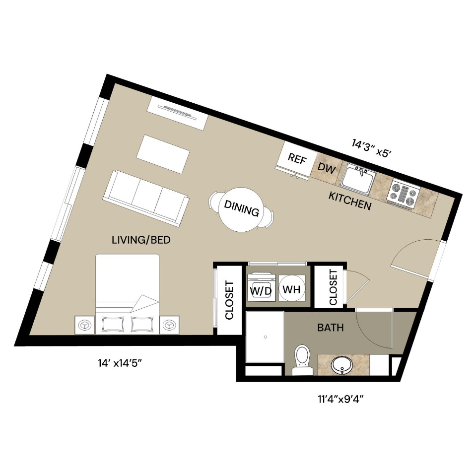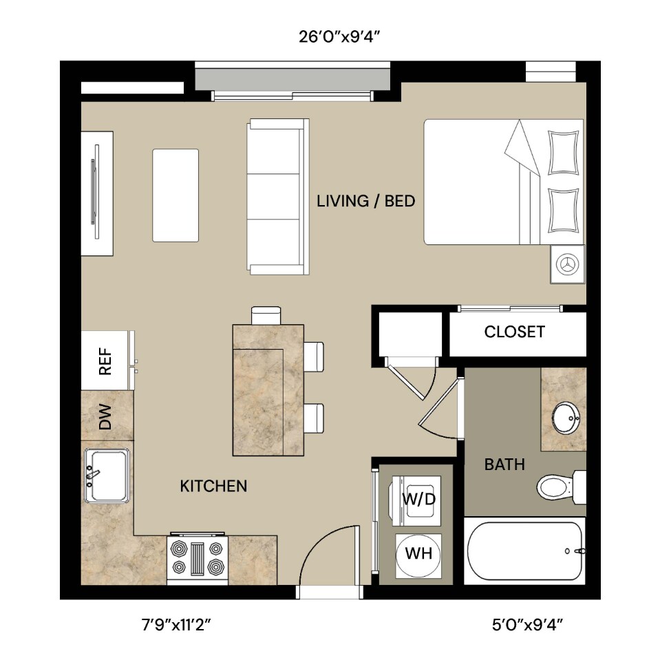 Studio, 1 Bath, 460 sq ftModel Gallery