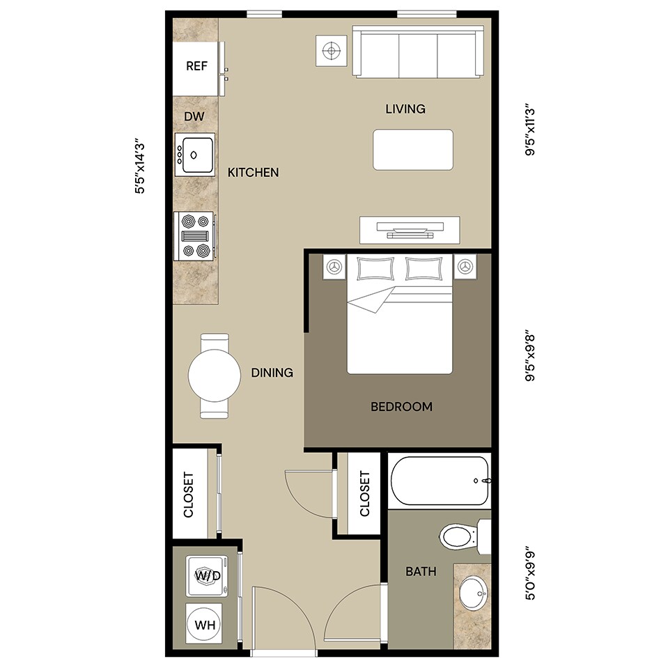 Studio, 1 Bath, 557 sq ftAvailable NowModel Gallery