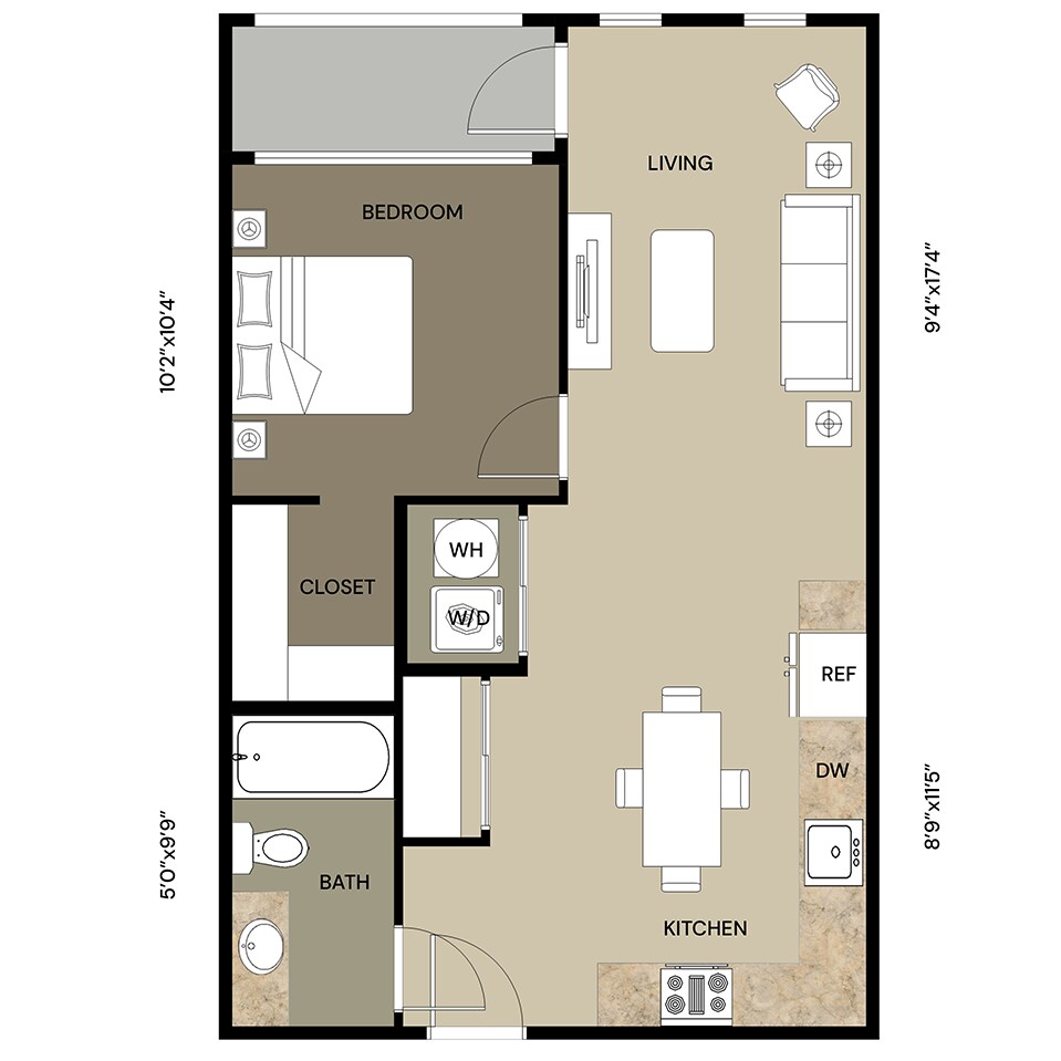 Studio, 1 Bath, 525 sq ftModel Gallery