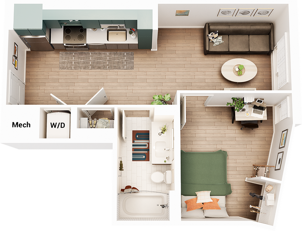 Studio, 1 Bath, 406 sq ftAvailable August 20, 2026Model Gallery