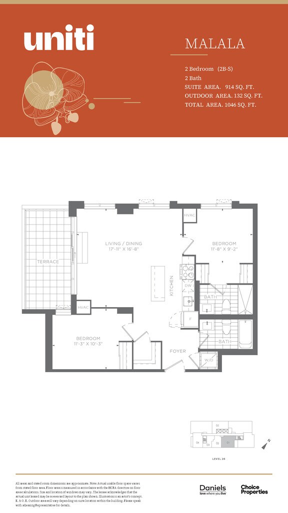 Apartment Model: Malala$2,6002 Bedroom, 2 Bath, 914 sq ftAvailable NowMalala - Floorplan 1