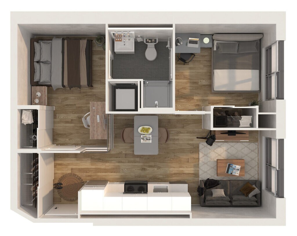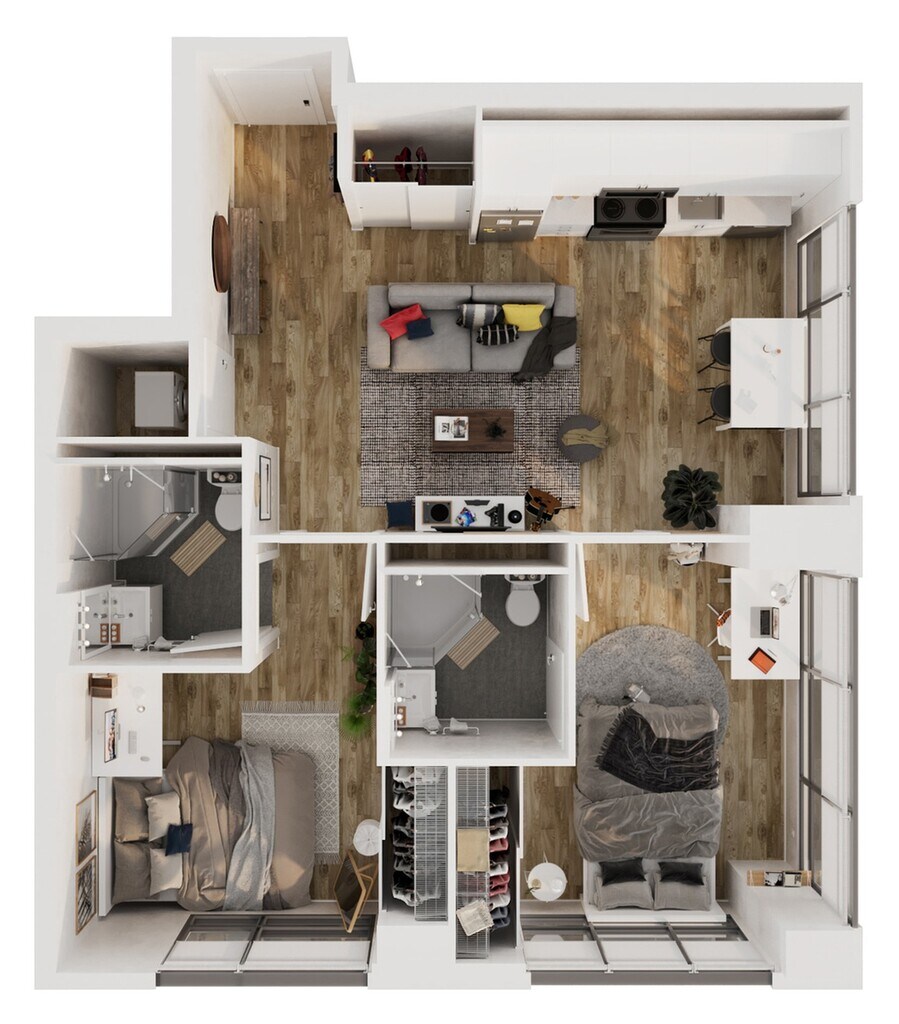 2 Beds, 2 Baths, 599 sq ftAvailable NowModel Gallery