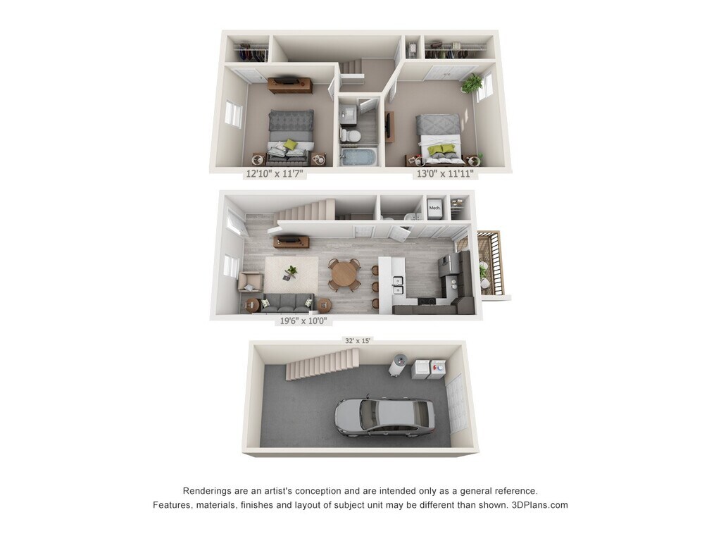 1 Bedroom with Drive Under Garage - 680sf - Floorplan 1 1 Bedroom with Attached Garage
