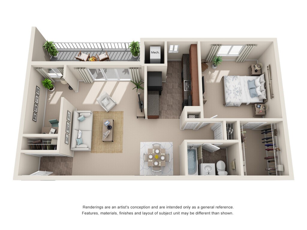 1 Bed, 1 Bath, 832 sq ftModel Gallery