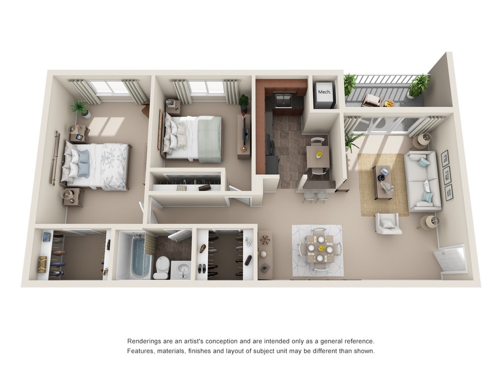 2 Beds, 1 Bath, 816 sq ftAvailable NowModel Gallery