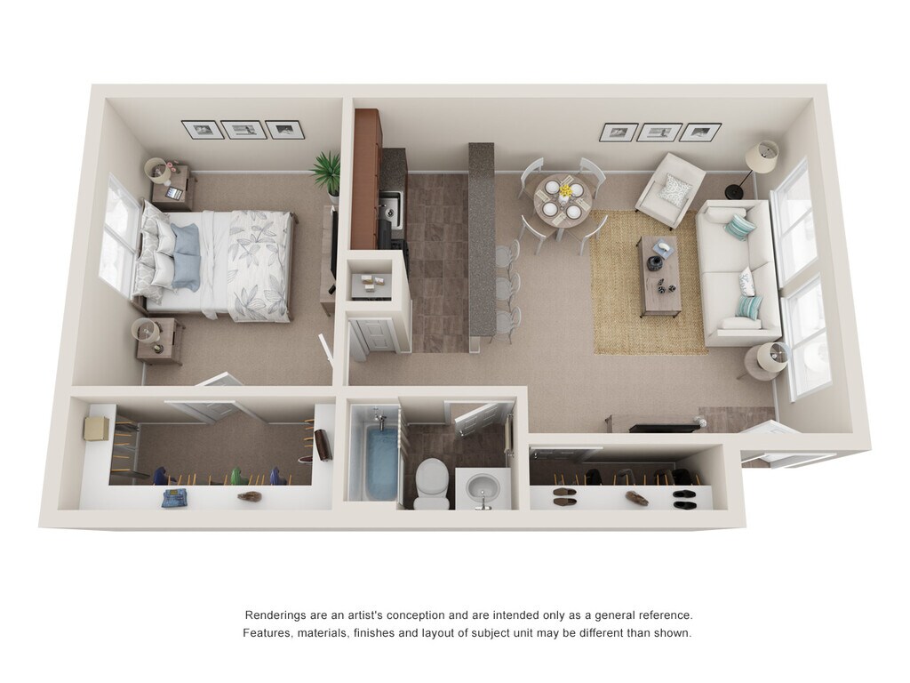 1 Bed, 1 Bath, 640 sq ftModel Gallery