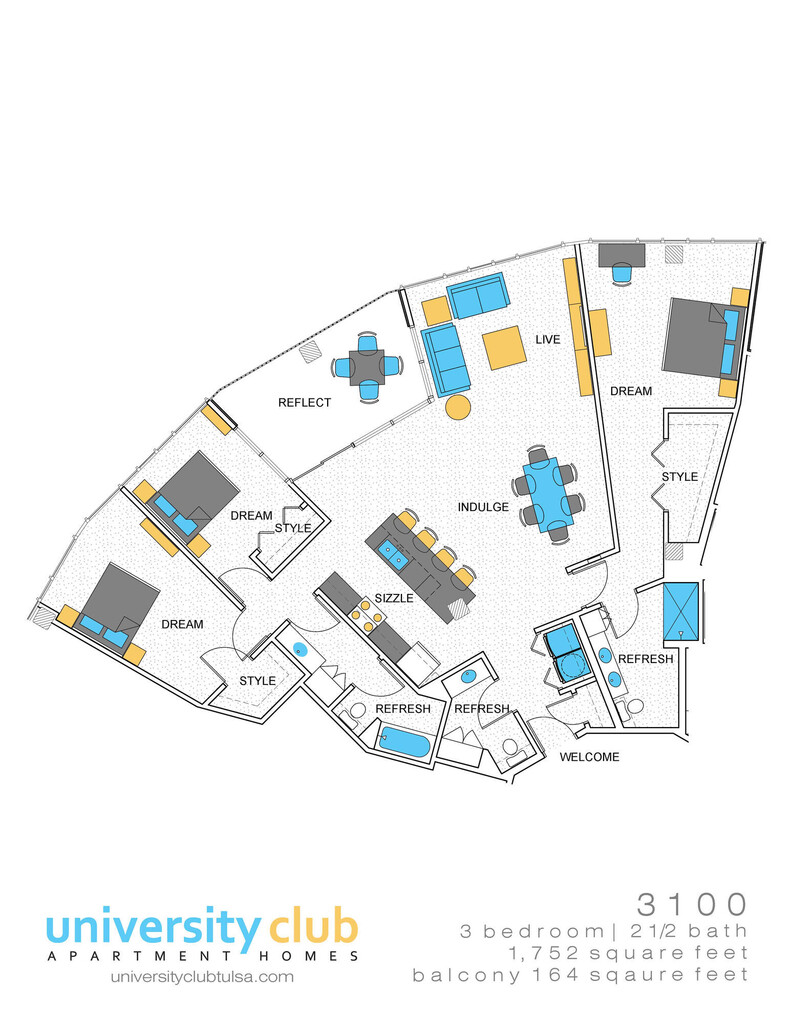Studio to 3 Bedroom Apartments at University Club Apartments currently range from $1,158 to $1,787