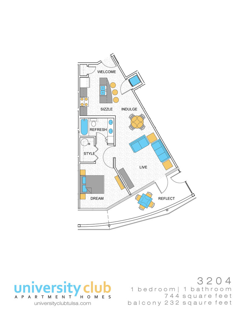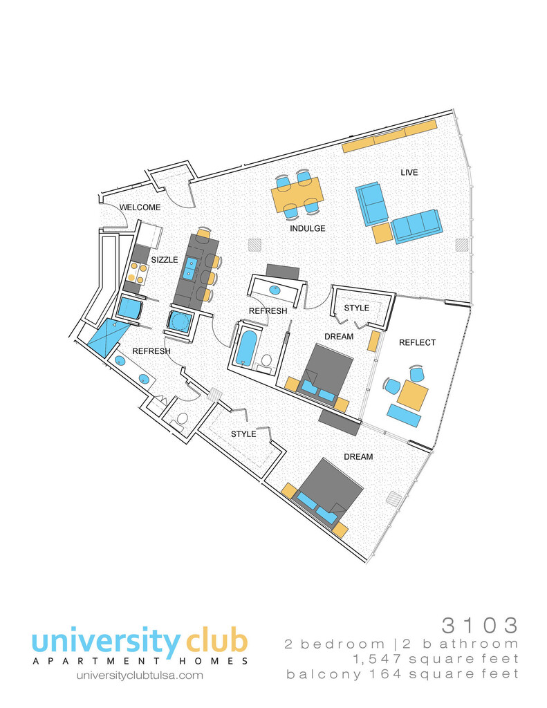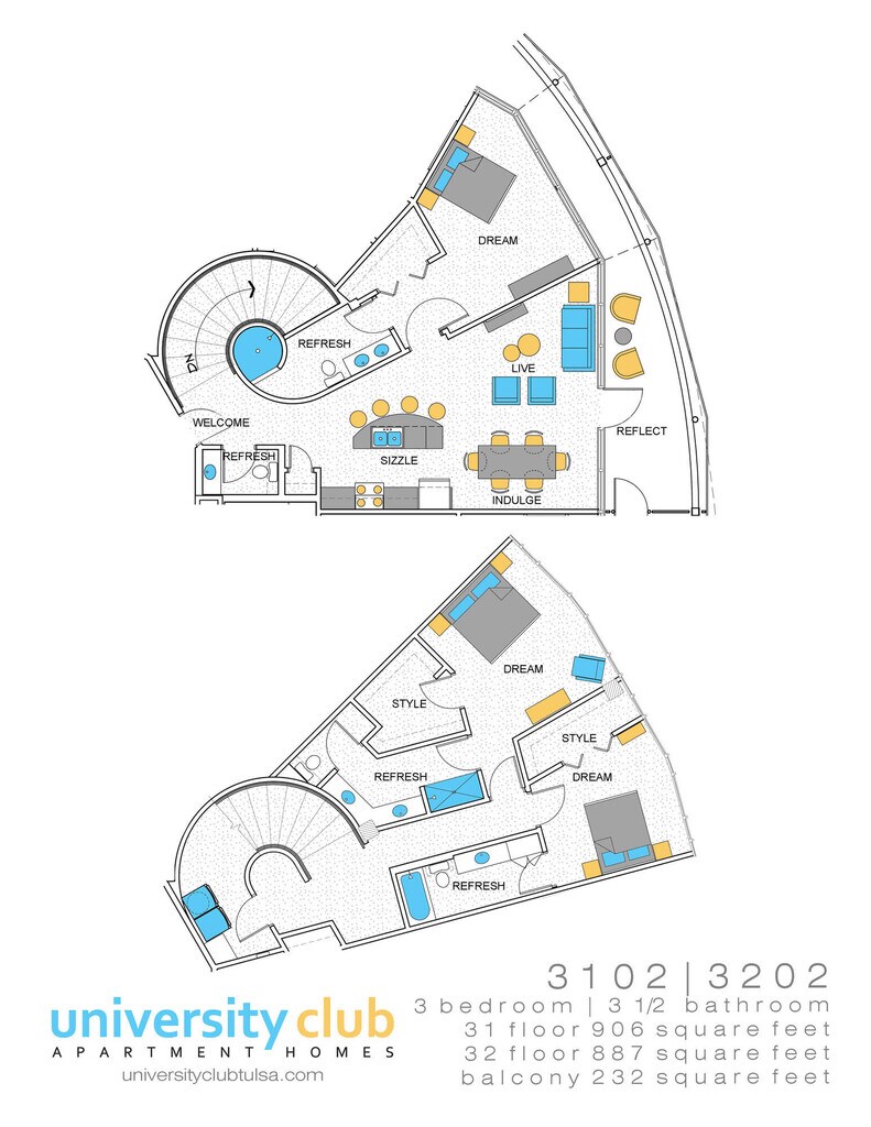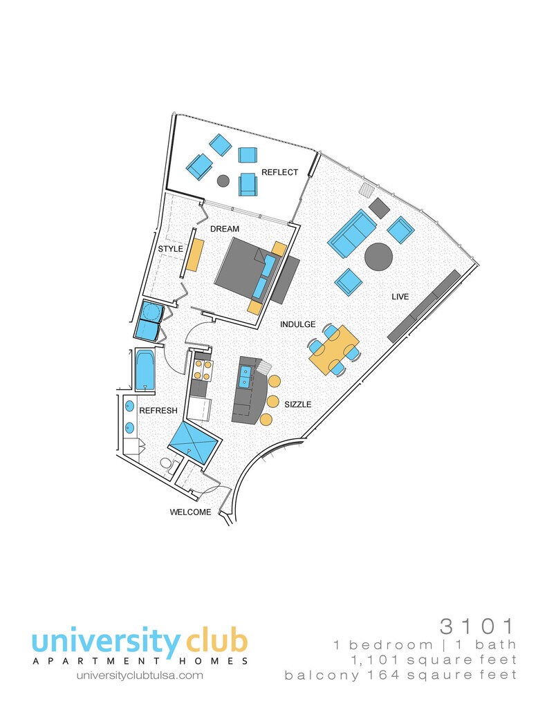 University Club Apartments offers Studio to 3 Bedroom apartments starting from $1,158 and having 697–1,865 sq ft. Here is the current pricing and availability: