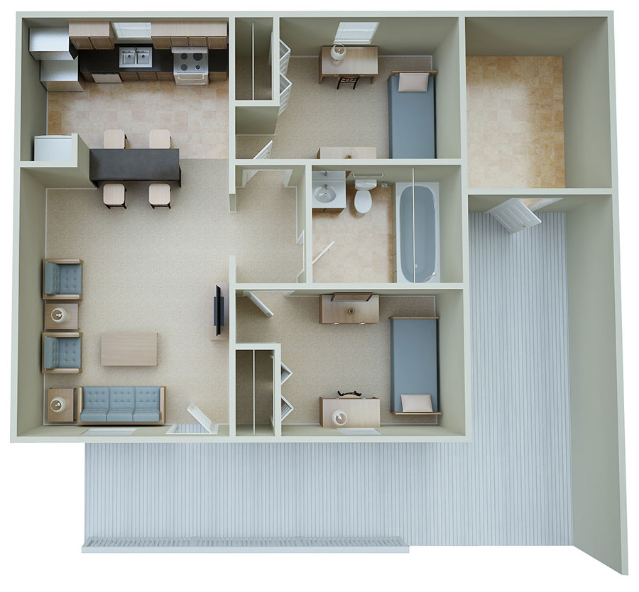 4 Beds, 2 Baths, 1040 sq ftModel Gallery