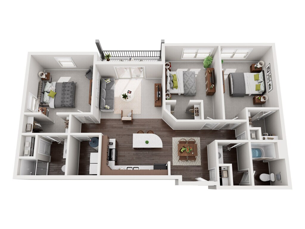 Studio to 3 Bedroom Apartments at University Commons currently range from $986 to $1,966