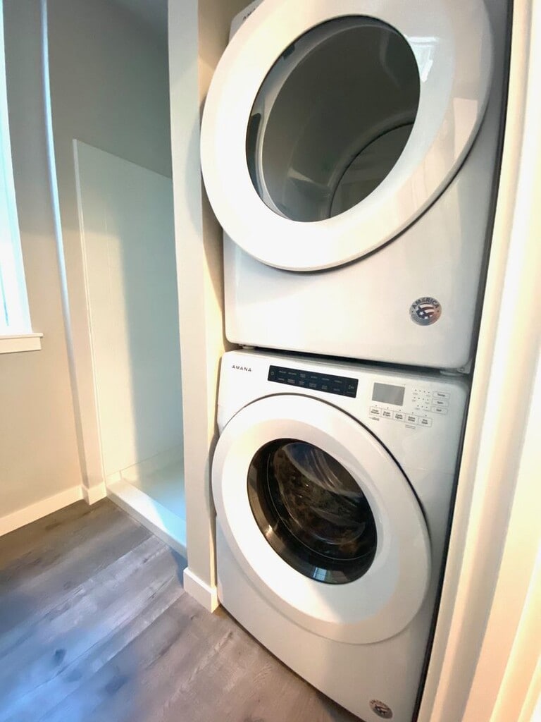 stainless steel appliances, white quartz countertop, 9' ceilings, luxury wood vinyl flooring throughout, huge picturesque windows, brushed nickel hardware fixtures, two-tone soft close cabinets, corner apartment, indoor bike storage room, controll...