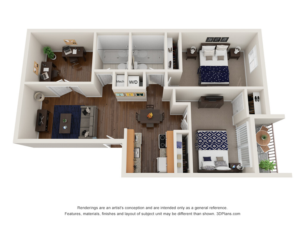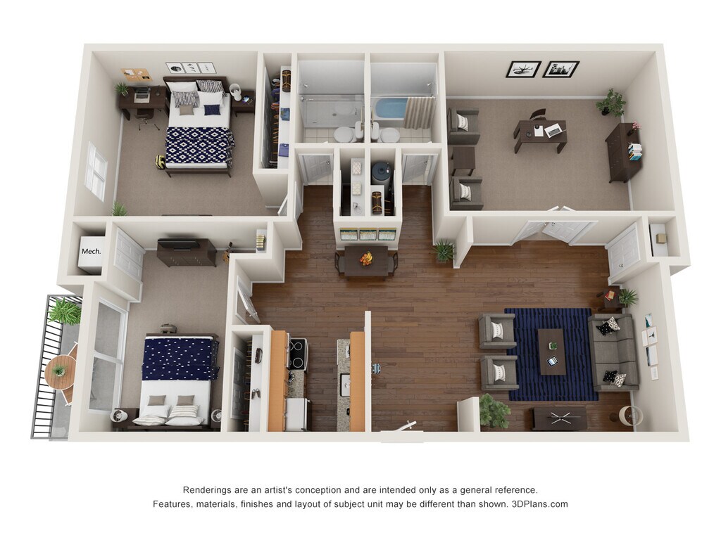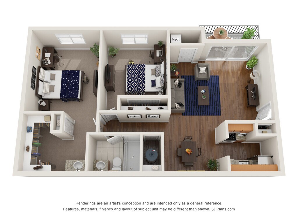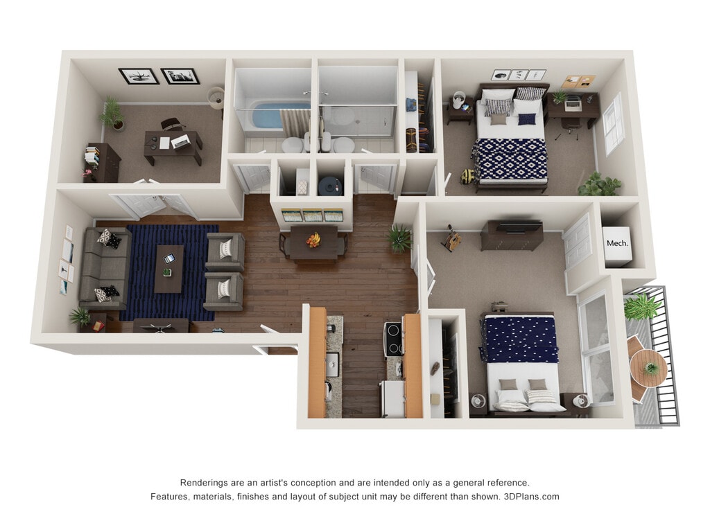 2 Beds, 2 Baths, 777 sq ftModel Gallery