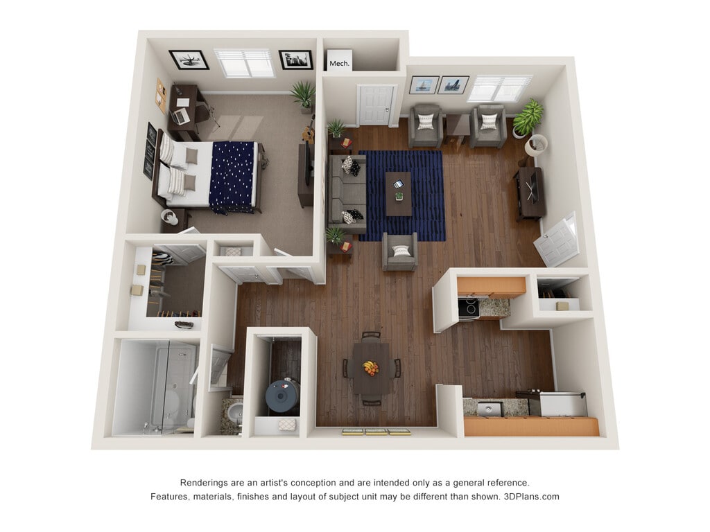 1 Bed, 1 Bath, 615 sq ftModel Gallery