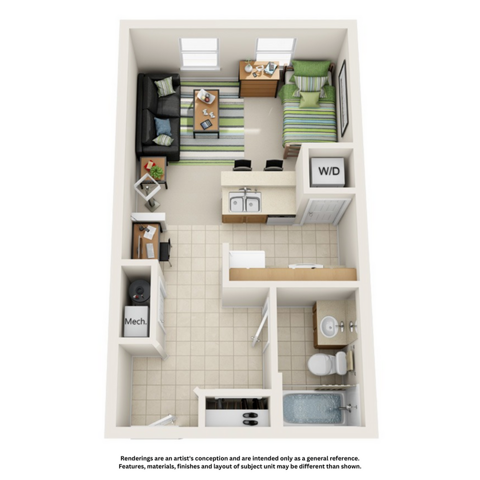 Apartment Model: 1-Bed$1,1101 Bedroom, 1 Bath, 500 sq ftAvailable August 13, 20261-Bed - Floorplan 1 Apartment Unit: PrivateApartment Model: 1-Bed$1,1101 Bedroom, 1 Bath, 500 sq ftAvailable August 13, 2026Premium Studio
