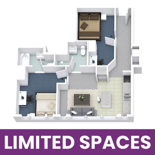 2x2A - Floorplan 2 Apartment Unit: PrivateApartment Model: 2x2A2 Bedroom, 2 Bath, sq ftAvailable August 15, 2026Apartment Unit: Private PenthouseApartment Model: 2x2A2 Bedroom, 2 Bath, sq ftAvailable August 15, 2026Apartment Unit: Private Premium FloorApartment Model: 2x2A2 Bedroom, 2 Bath, sq ftAvailable August 15, 20263 Bedrooms