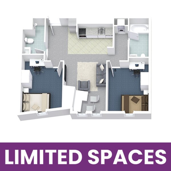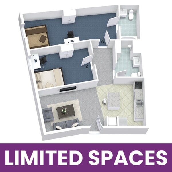 1x2A - Floorplan 2 Apartment Unit: PrivateApartment Model: 1x2A1 Bedroom, 2 Bath, sq ftAvailable August 15, 20261x2B