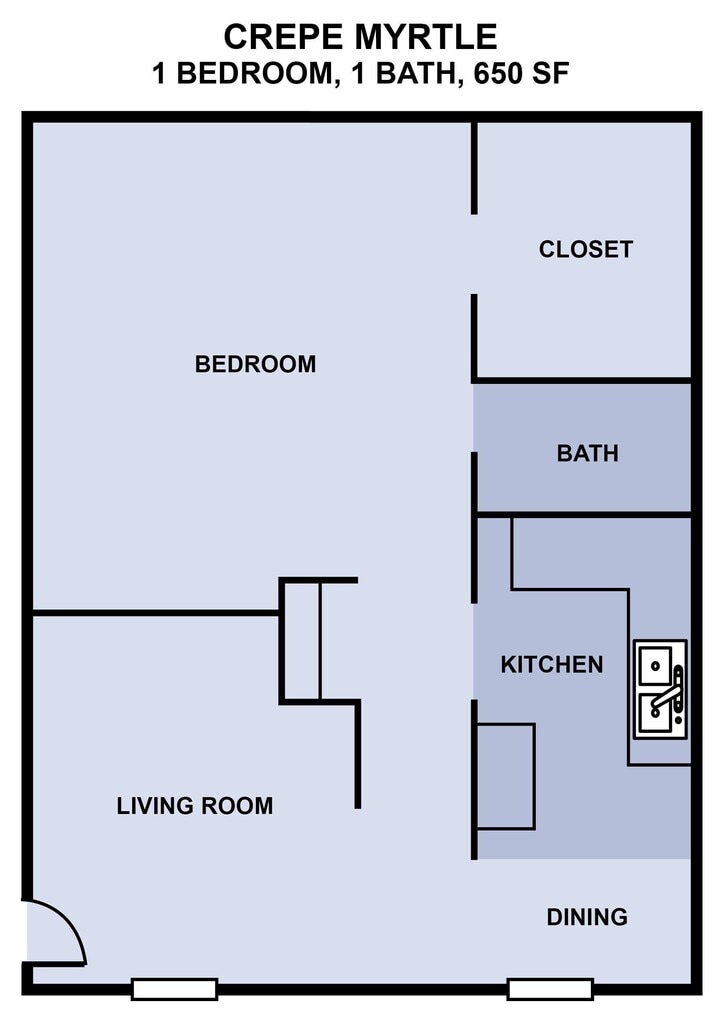 Apartment Model: Crepe MyrtleFrom $8701 Bedroom, 1 Bath, 650 sq ftAvailable NowFloorplansPhotos![]()